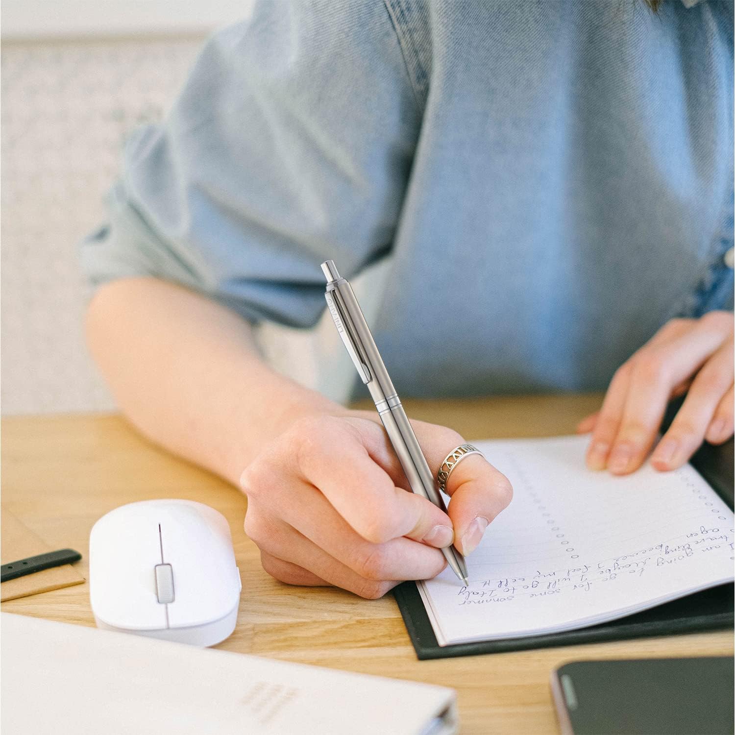 - Metallic Barrel: A sturdy and high-quality metal pen with a well-balanced weight that can be easily carried around for your daily writing needs. The durable metal clip makes it easy to carry on notebooks, pockets, and binders.