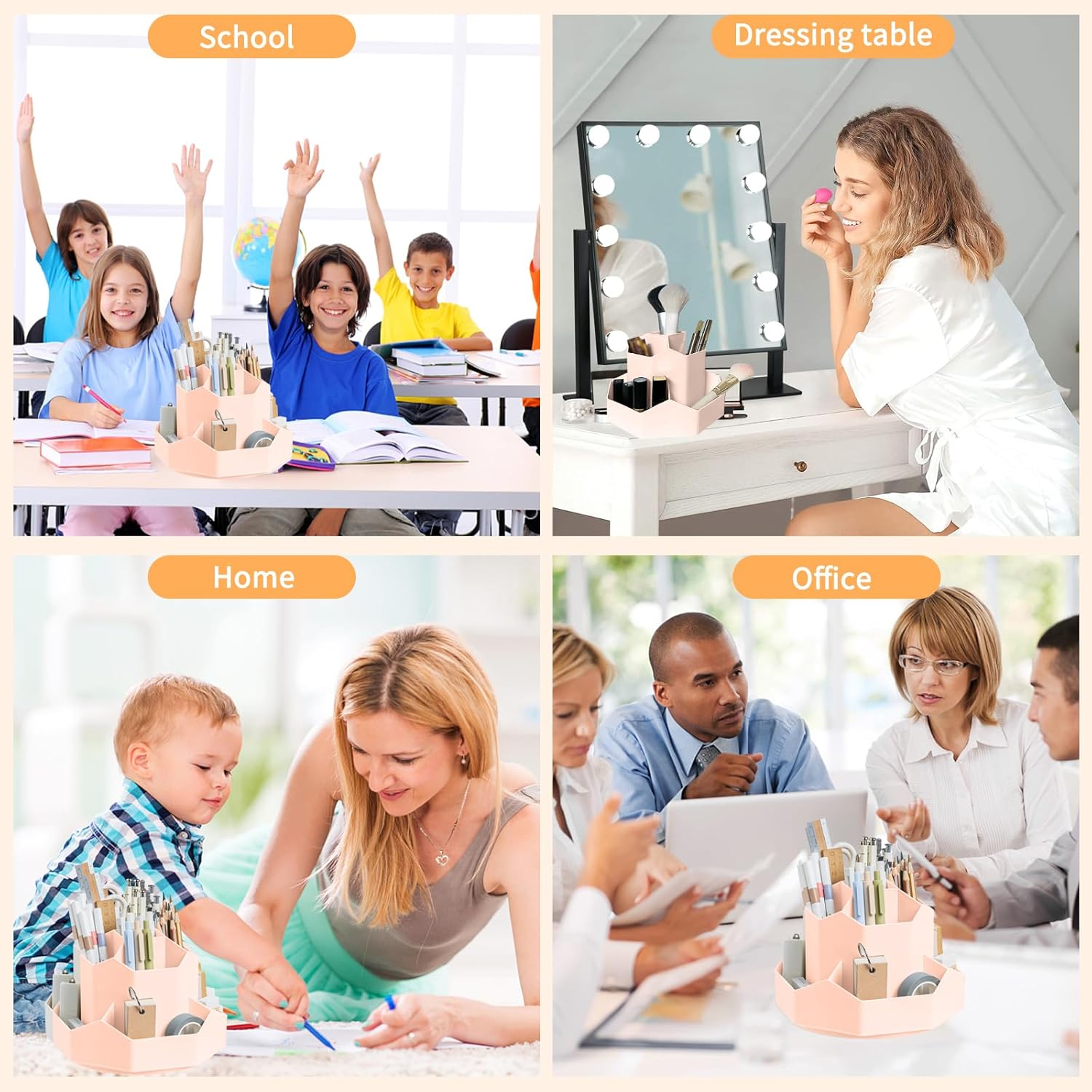 - ăMultipurpose Desktop OrganizerăThis desktop organizer is more than just an office pencil holder. It is suitable for office, home, school, classroom, living room, bedroom, vanity, dresser, and anywhere you need it; It helps keep your desk clean and tidy