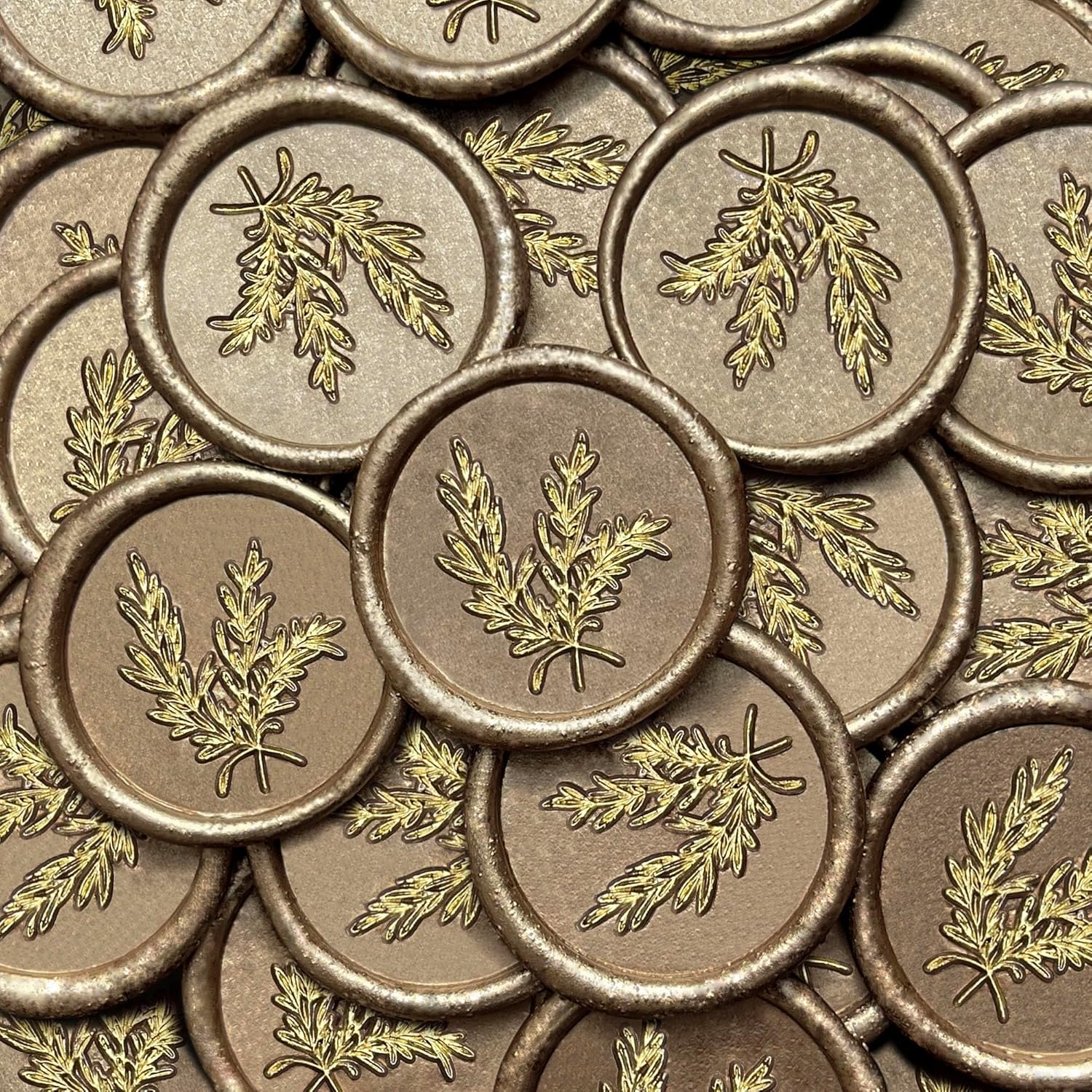 50Pcs Gold & Champagne Gold Wax Seal Stickers Handmade Envelope Seals Self Adhesive Wax Stickers for Wedding Party Invitations, Envelope, Gift Wrap, Christmas(Gold Rosemary Style, Champagne Gold Wax)