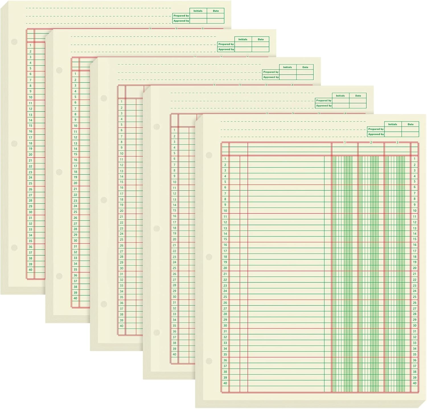 Fulmoon 5 Pack 250 Sheets Ledger Paper Accounting Columnar Pads 3 Hole Analysis Accounting Ledger Book for Business, 50 Sheets/Pack, Single Page Format, Green(8.5 x 11 Inch,3 Columnar)