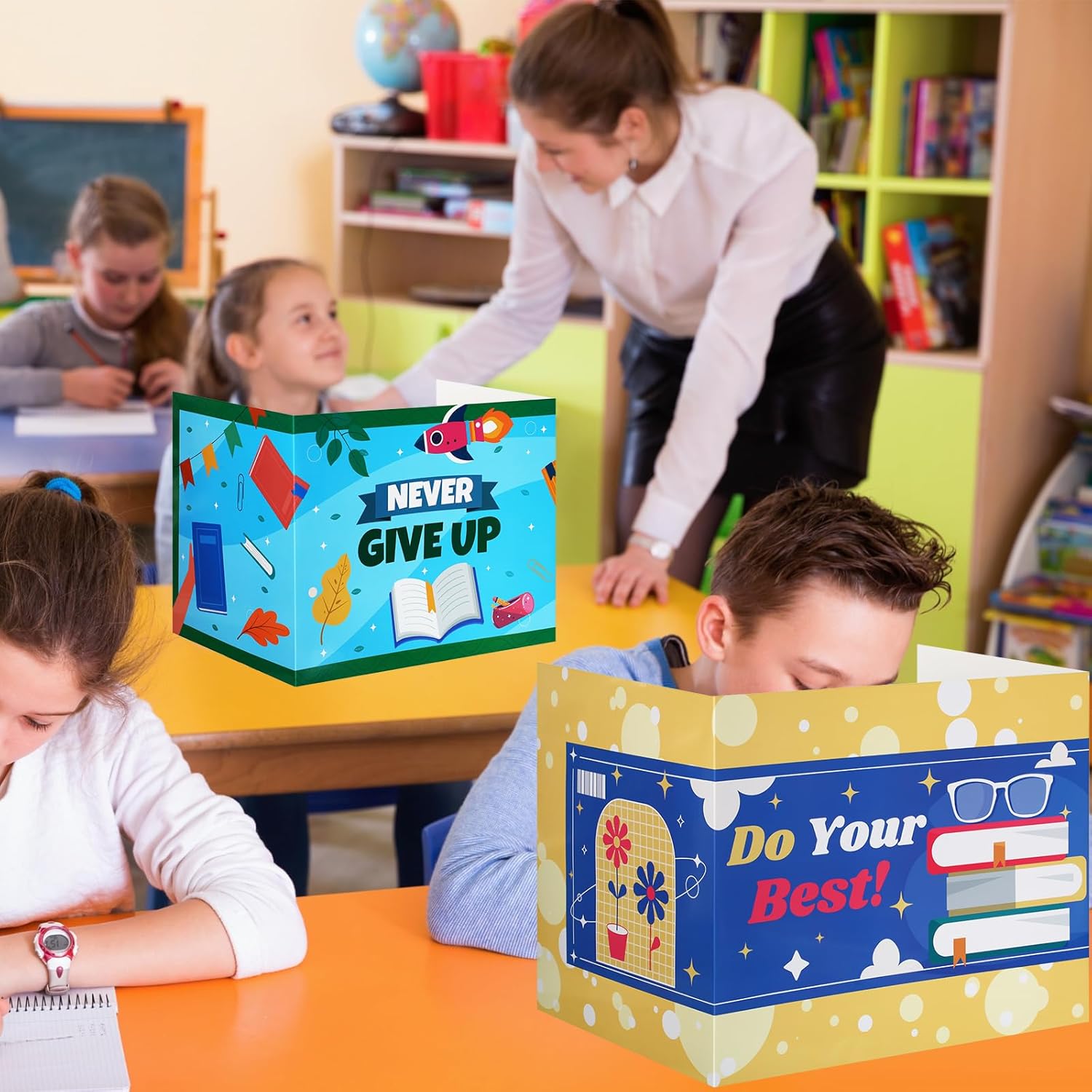 Crtiin 24 Pcs Privacy Folders for Students Desk Dividers Standard School Privacy Cardboard Board Testing Dividers Shield for Classroom Teacher Supplies Keep Eyes from roving(Encourage)