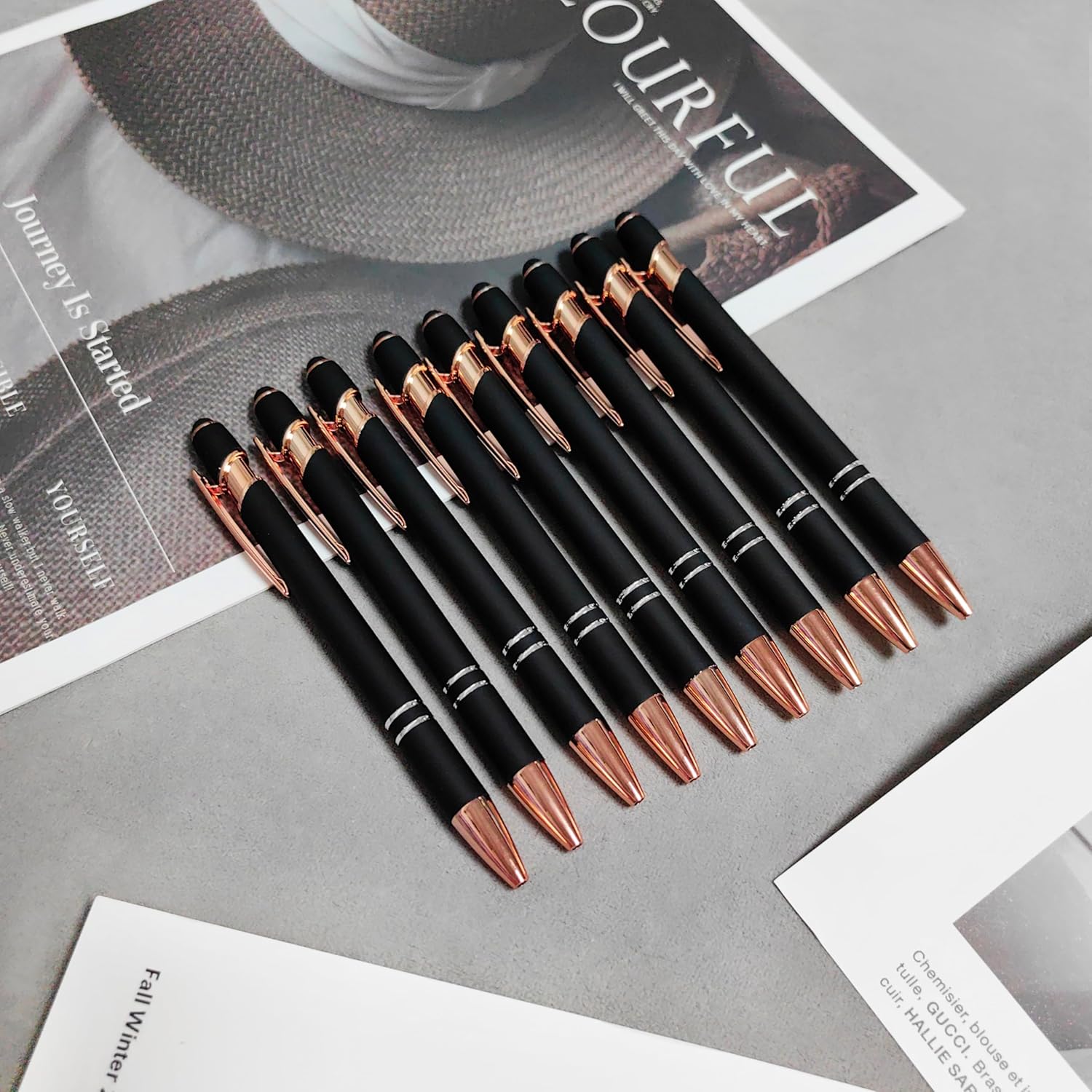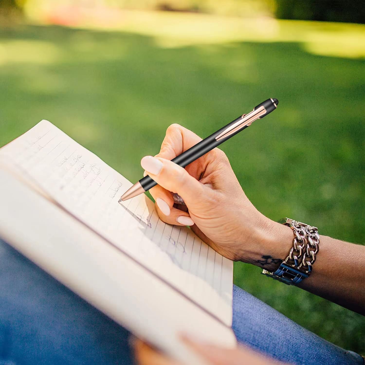 Aozora 9 Pack Ballpoint Pens Smooth Writing 2-in-1 Stylus Retractable Ballpoint Pen with Stylus tip, Office Decor Metal Stylu Pen for Touch Screens, 1.0 mm Black Ink (Black)
