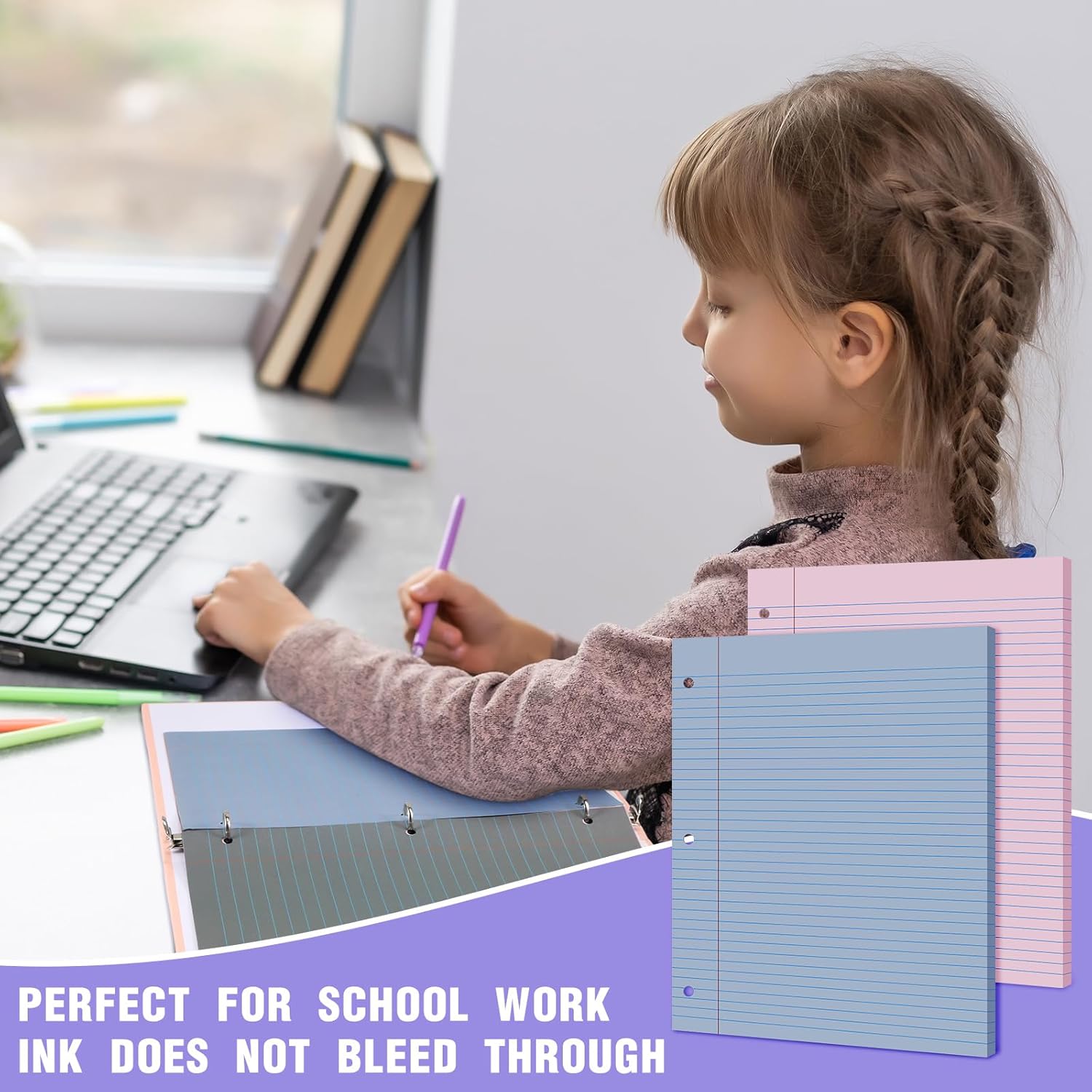 PerKoop 12 Pack 600 Sheets Colored Lined Paper Bulk Wide Ruled 8 x 10.5 Inches, Pastel Loose Leaf Notebook Paper 3 Hole Punched Filler for Back School Classroom Supplies(Elegant Color)