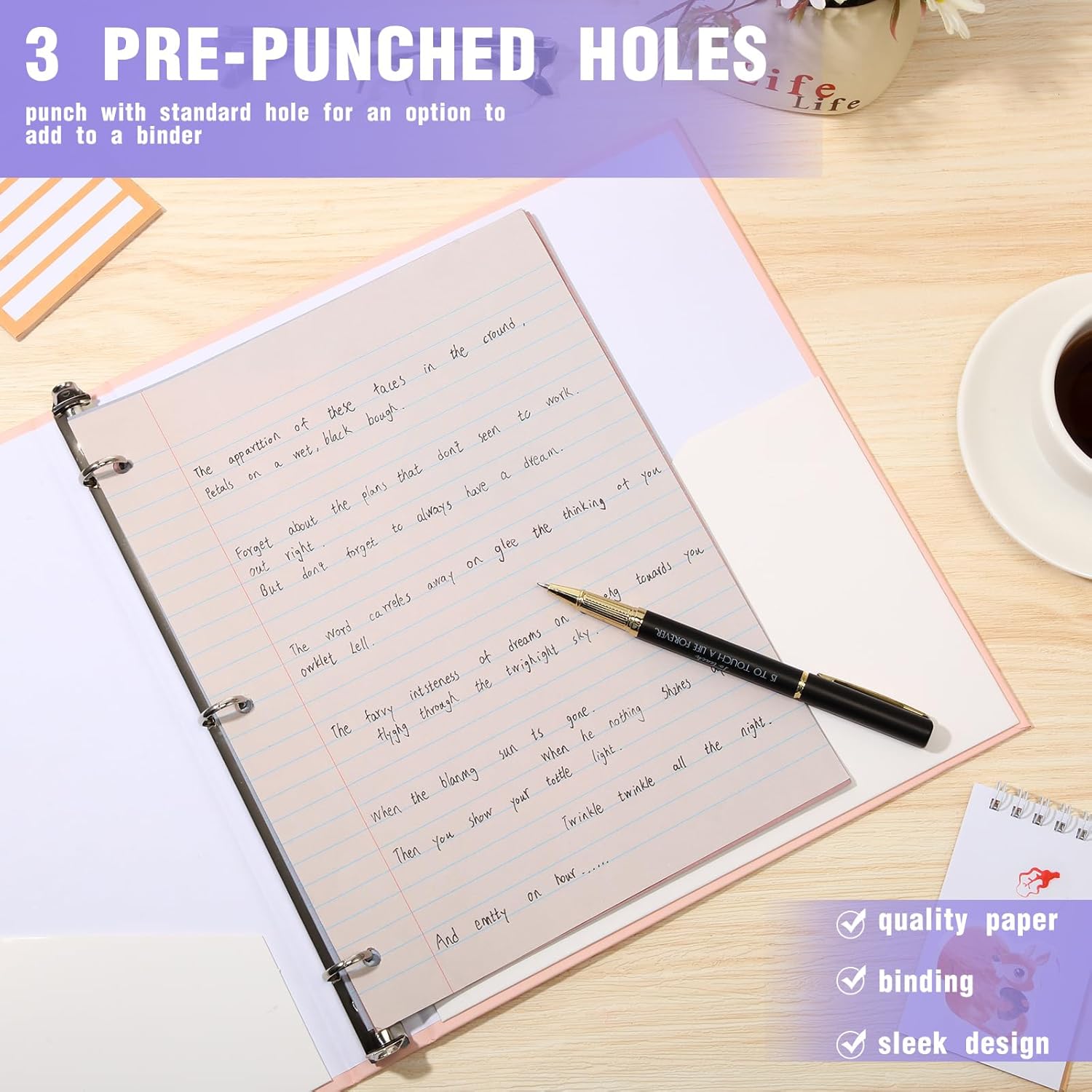 - Designed for Binders: our 3 hole colored filler paper can be added to file folders, fits standard ring binders and pocket folders with tight fasteners, or can be used on its own, helps with organization and planning