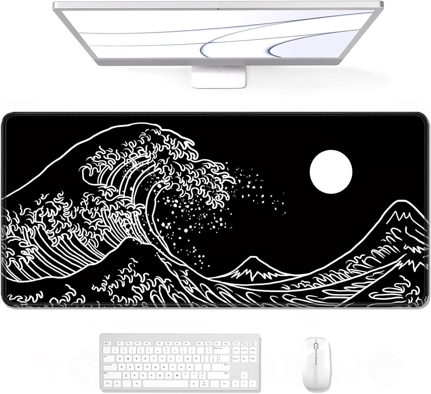 Auhoahsil Large Mouse Pad, XXL Gaming Mousepad, Desk Mat for Desktop, Thick Rubber, Big & Long Size, Stitched Edges, Full Desk Pad for Laptop & Computer, Extended 35.4 x 15.7 in, Black Great Wave