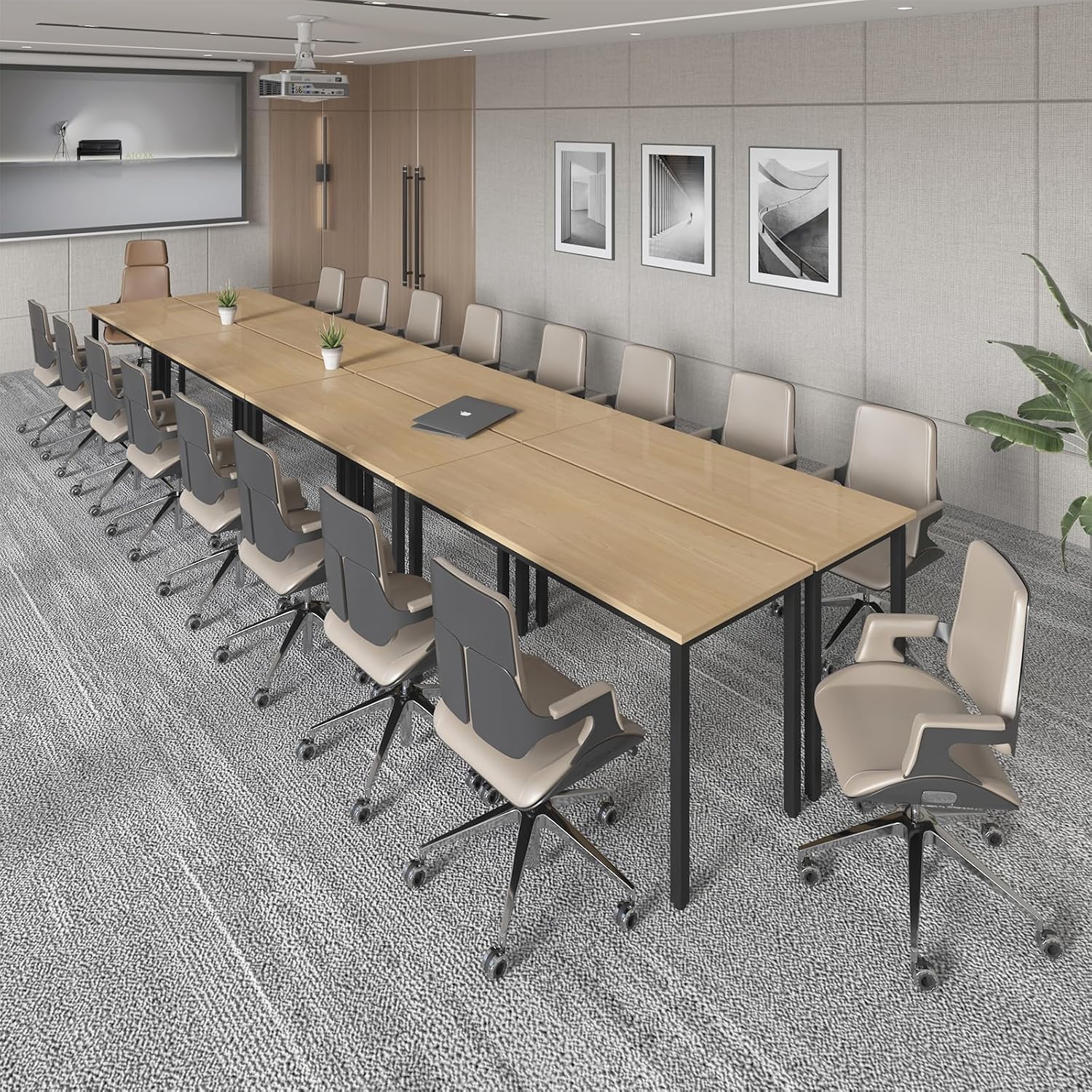 Bonzy Home Conference Tables 18ft Office Computer Desk for Meeting Room Study Writing Printer Table Meeting Seminar Table for 20 People Rustic Vintage Natural 8PCS 220.4"x47.2"x29.5"