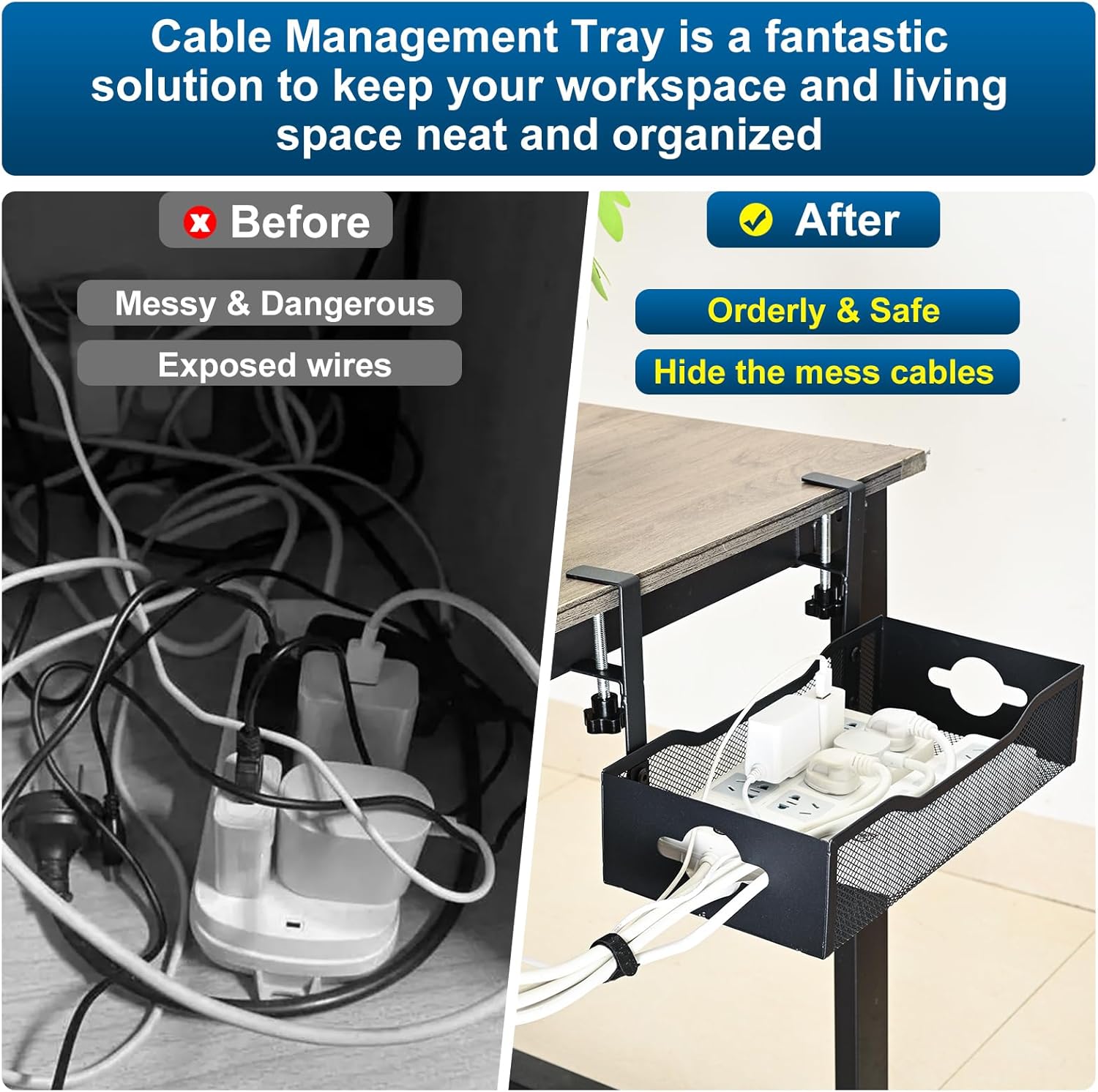 - Spacious & Durable Design-Engineered with heavy-duty steel and a 13.38'' x 7'' extra-large surface, this under-desk tray securely holds power strips, surge protectors,accommodates multiple cords, while the ventilated design prevents overheating. Perfect for home offices, gaming setups, and spaces requiring robust cable management.