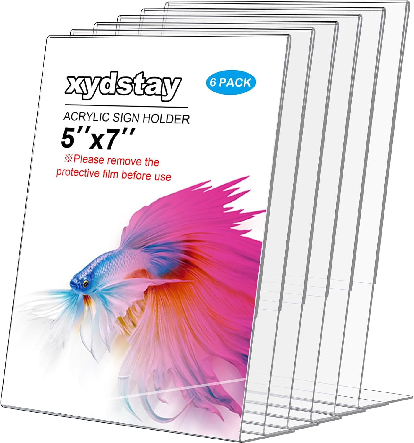 6pack Acrylic Sign Holder 5x7 for Picture Frames, L Shape Clear Plastic, Plastic Sign Holder,Menu Holder, Unbreakable Table Sign Holder for Restaurant, Office, School, Store and Home Use