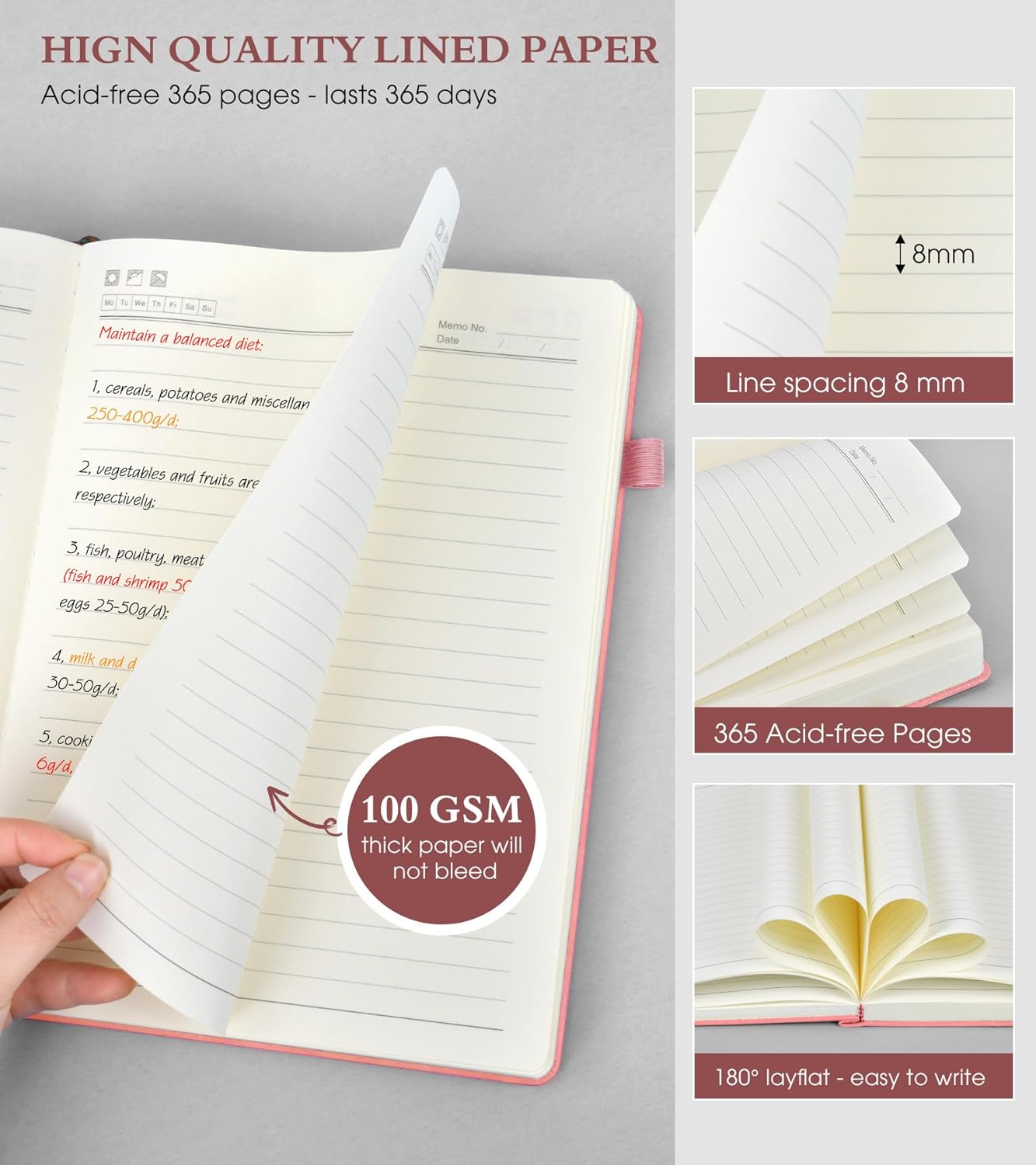 A4 Lined Journal Notebook,365 Page Large Leather Journals for Writing Women Men,Hardcover Notebook with 100Gsm Thick Pages for Travel,Work,School,College Ruled, Daily Diary (8.5" x 11.4")
