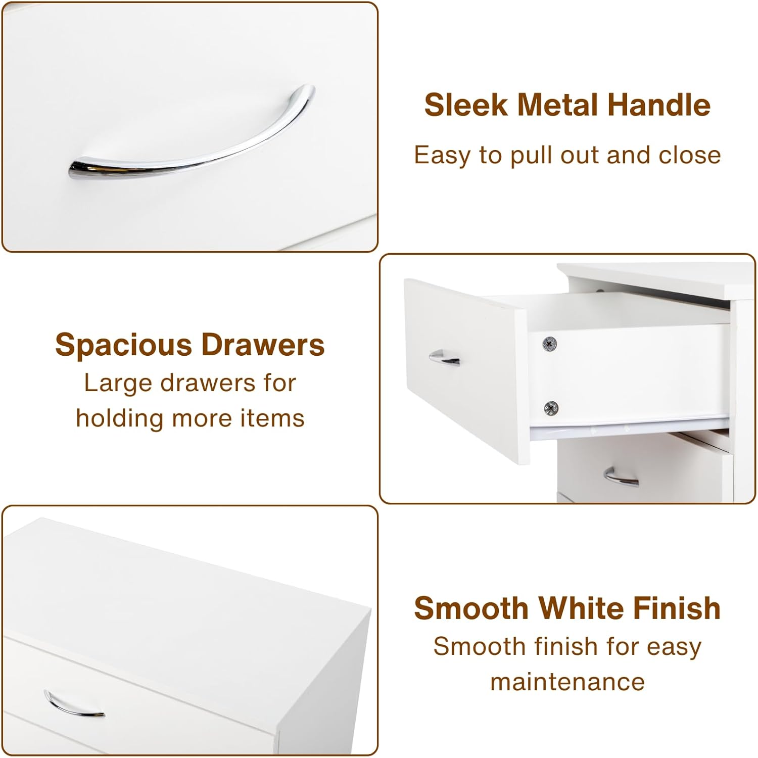 Karl home 4 Drawer Dresser for Bedroom, Small Chests of Drawers Modern Nightstand, White Dresser Chest with 4 Storage Drawers, Dressers for Nursery, Hallway, Living Room, Closet