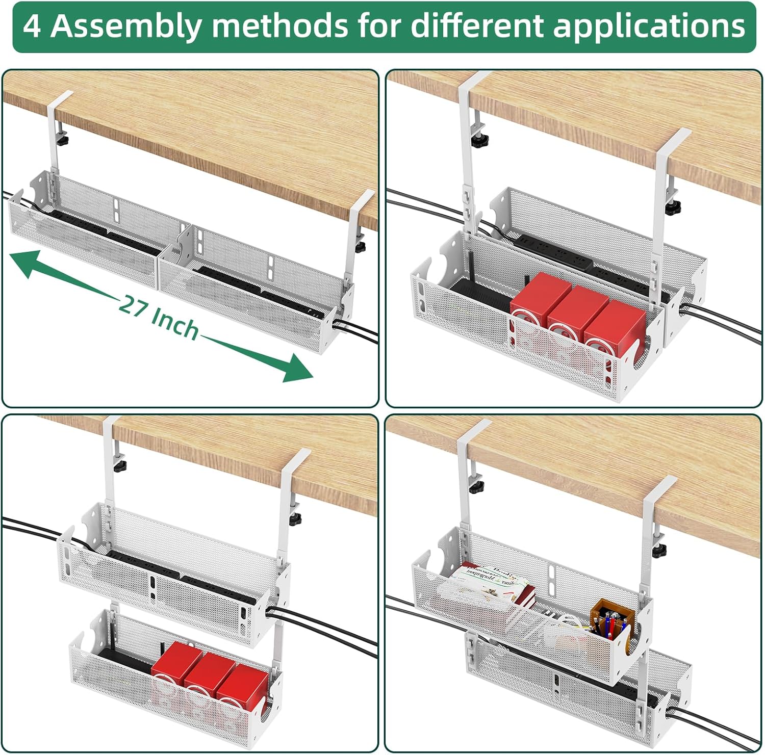 - MULTI-MODEL DESIGN : Our Multi-Model Under Desk Cable Management Trays Can Be Assembled To Suit Different Needs, You Will Get 2 Trays For The Price Of 1, Making The Cable Management Trays Longer, Wider Or Taller Depending On The Usage Requirements!