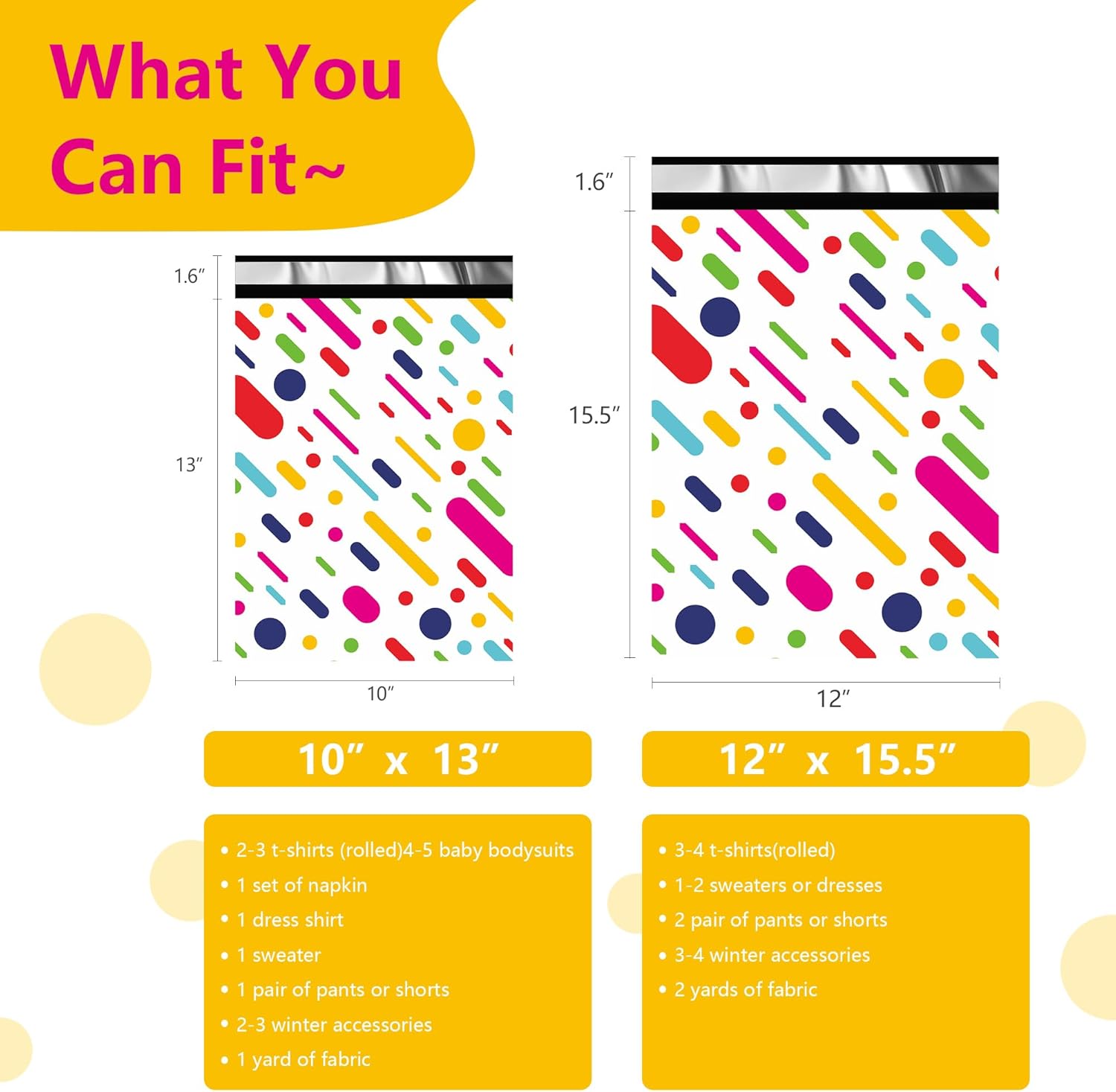 Poly Mailers 12x15.5 Inch 50 Pcs - Color Stripe Printed Shipping Bags, 2.4mil Thickness, Waterproof and Tear Resistant Mailing Envelopes, Self-Sealing Packaging Bags for Small Business