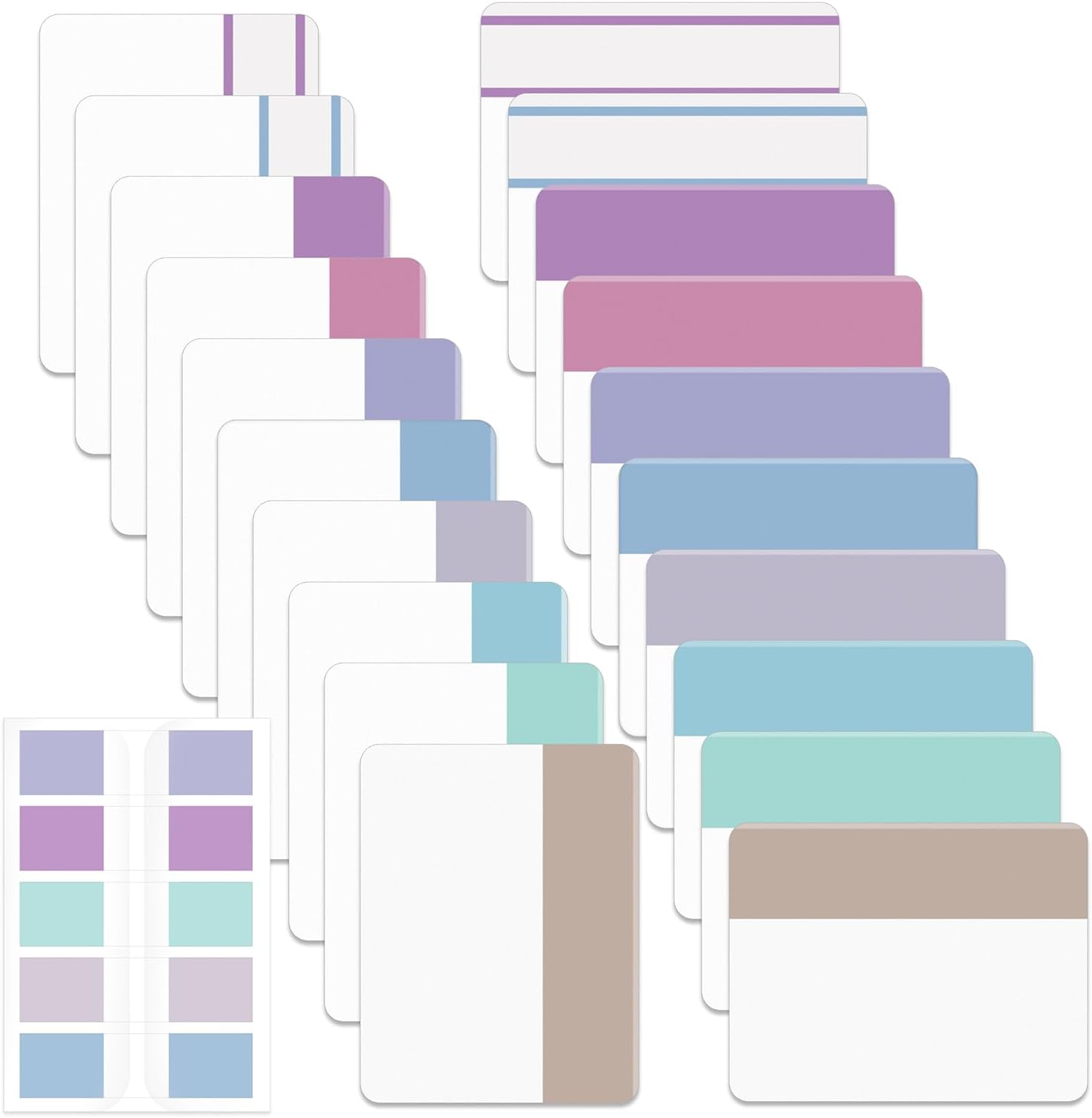 - Half of the file tabs have self-adhesive backing while the other half can be written on, making them repositionable and convenient for sticking and marking as well as removal without residue.