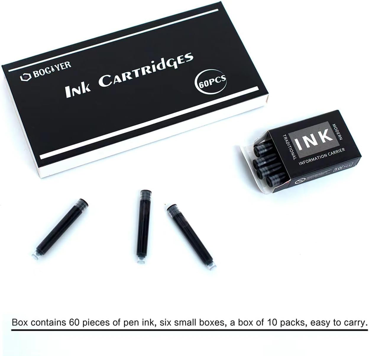 - Purchase Notes: BOCIYER brand ink cartridges come in two sizes, one is a 3.4mm caliber and the other is a 2.6mm caliber. Please make sure to confirm which size of ink cartridge your pen is using when purchasing.