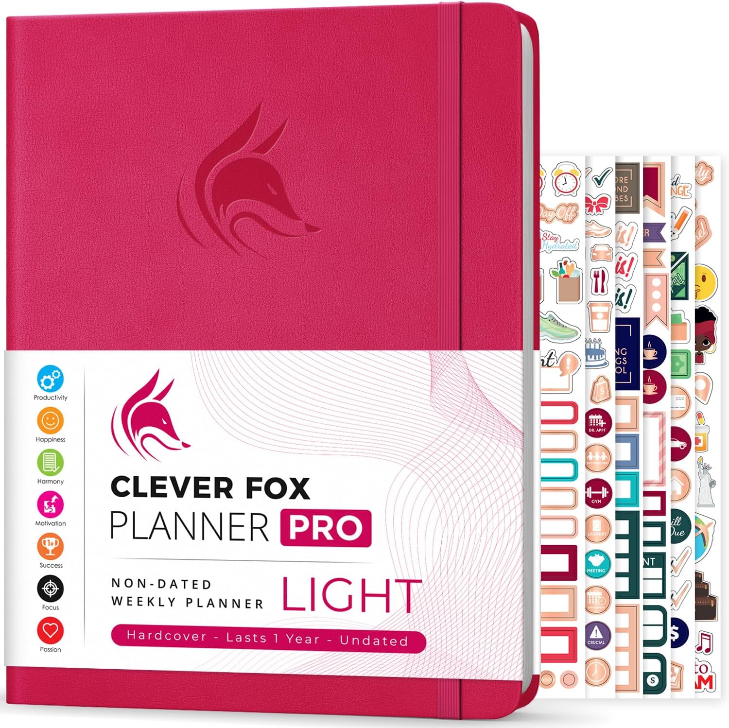 Clever Fox Planner PRO Light – Weekly & Monthly Life Planner to Increase Productivity, Time Management and Hit Your Goals, 8.5x11″ (Dark Pink)