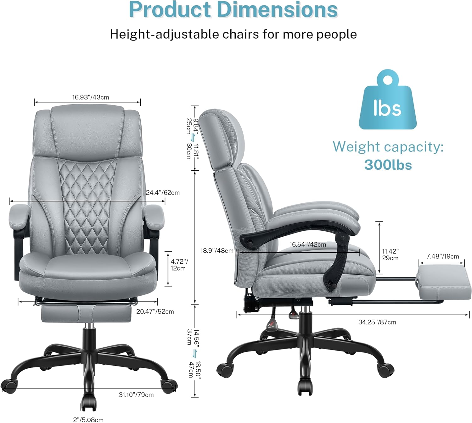 Executive Leather Office Chair, Big and Tall Desk Chair with Footrest Home Office Desk Chairs, Ergonomic Computer Desk Chair with Lumbar Support, Reclining Chair with Adjustable Angle