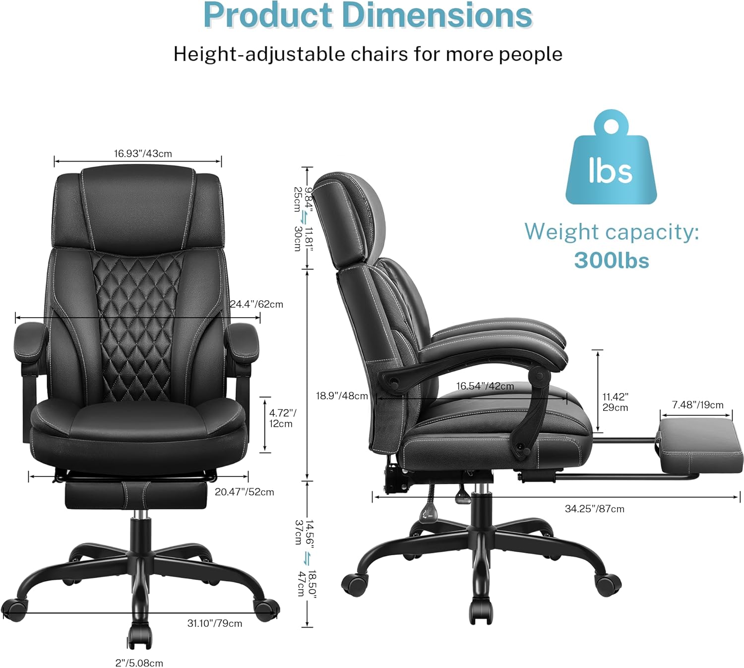 - Multifunctional and Easy to Install: To meet your daily needs, the backrest of this high back office chair can be adjusted and locked in the range of 90-135Β°. All parts, hardware, tools and instructions included in the package. We also provide installation videos, you can easily complete the assembly in 20-25 minutes. If you have any questions or issues, please feel free to contact our customer support team.