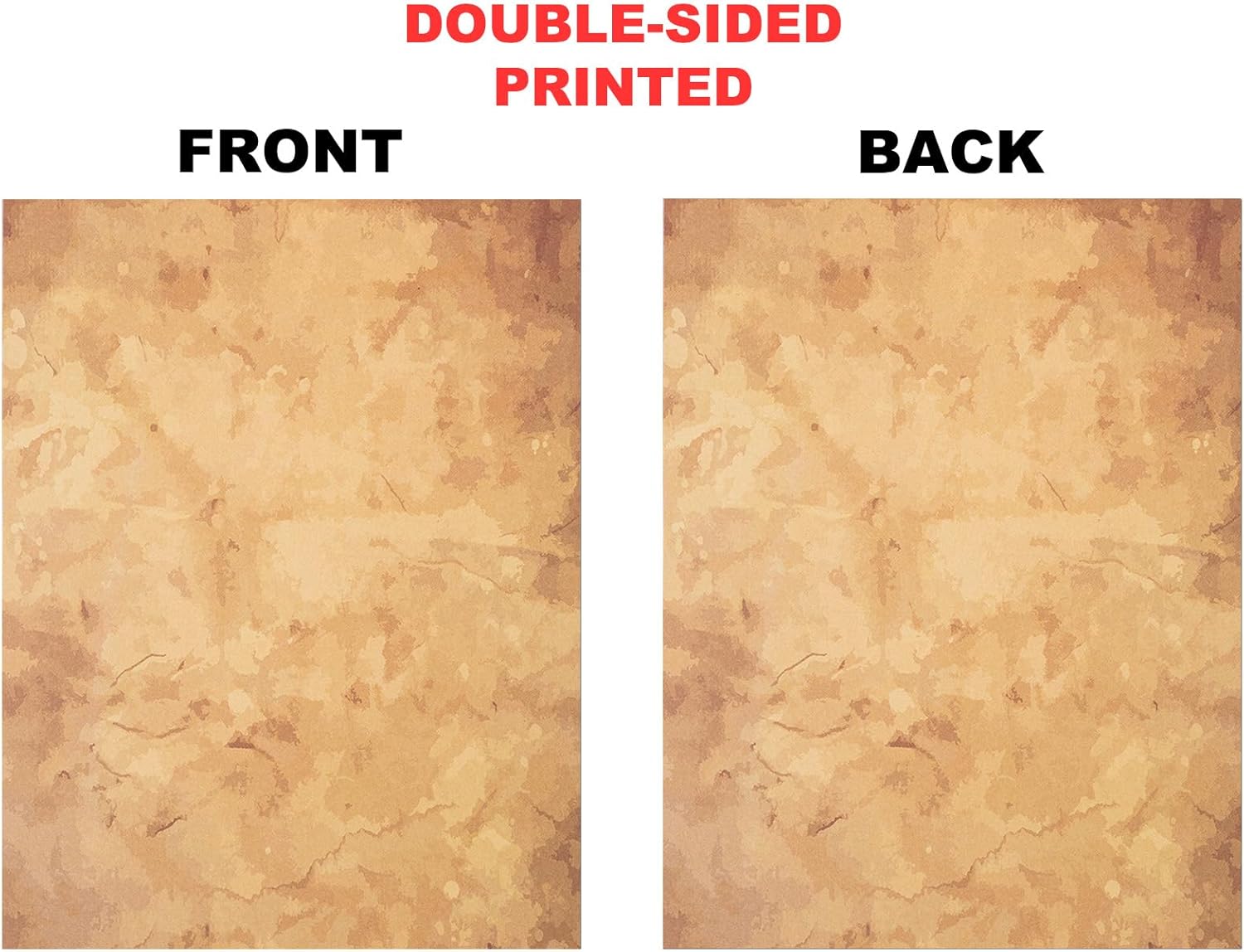 - EXCEPTIONAL QUALITY: Strong, durable and long lasting. Thick 100 GSM paper great for decoration and writing with no worries of ink bleed through paper. Our classic letter-size vintage paper measures 8.5 x 11 inches and fits perfectly into most Laser and Ink Jet printers. The sheets can also be handwritten with most ink pens and added to existing scrapbooks and fit in a standard envelope.