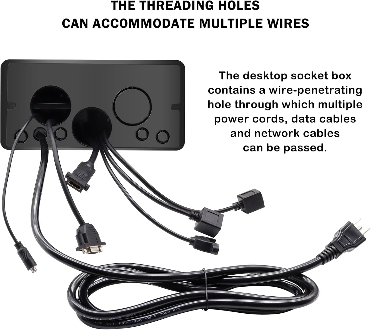 - 2: Pop up outlet Power Strip, Embedded countertop Pop Up Outlet, 6.5 Feet 16 AWG UL E231507 certificate power cord , 2 AC Outlets . Voltage 125V Current: 15A Power: 1875W, Equipped with 3.5mm audio, dual network ports, HDMI port, USB port, VGA interface, suitable for multimedia teaching and conference table teaching. Computer teaching using multi screen display screens
