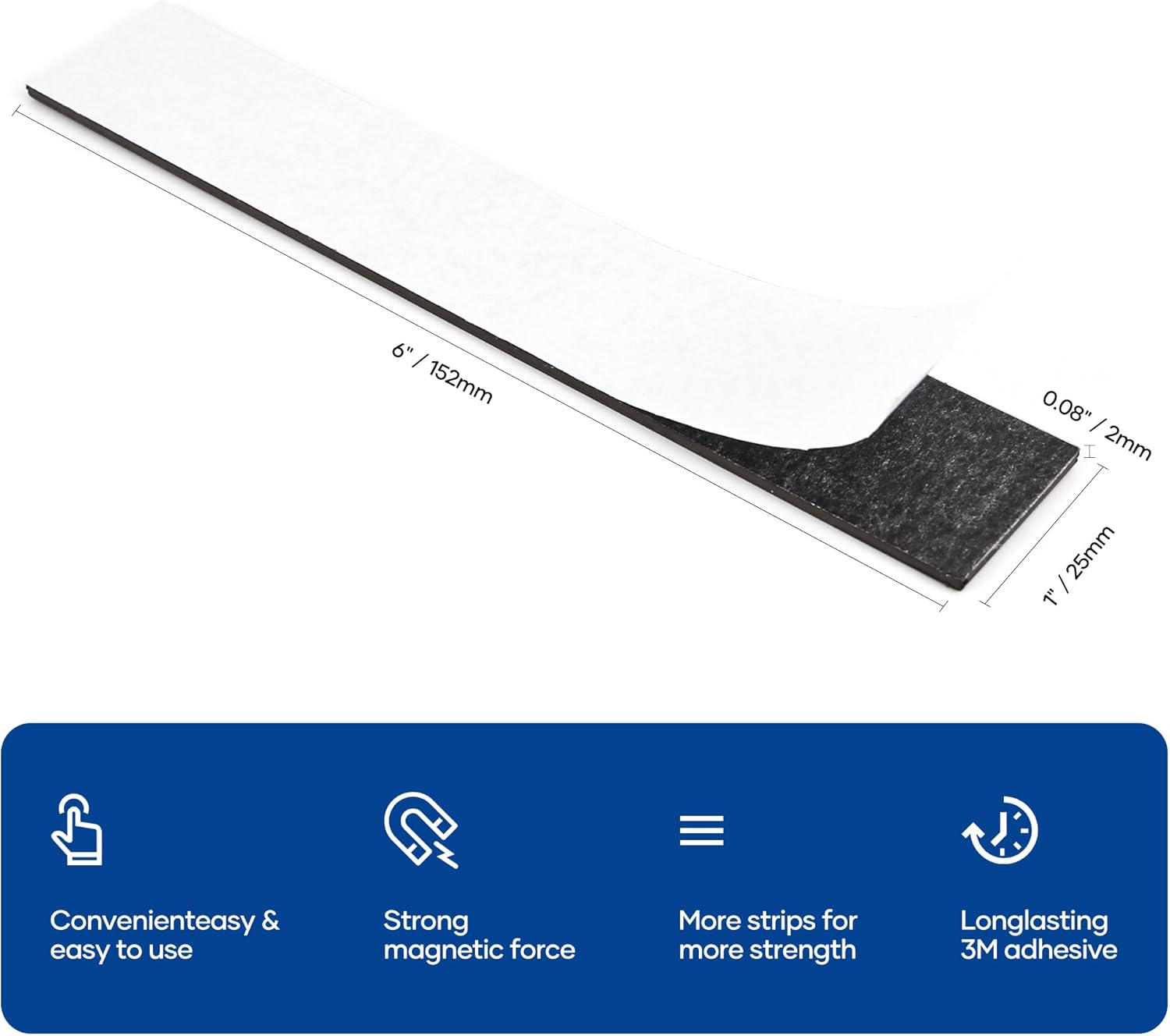 - EASY TO USE: The strong magnet strip is pre-cut has a strong magnet on one side and a premium adhesive on the other.Unlike other roll magnetic strip, this one with adhesive backing always stay flat to efficiently adhere to any surface.