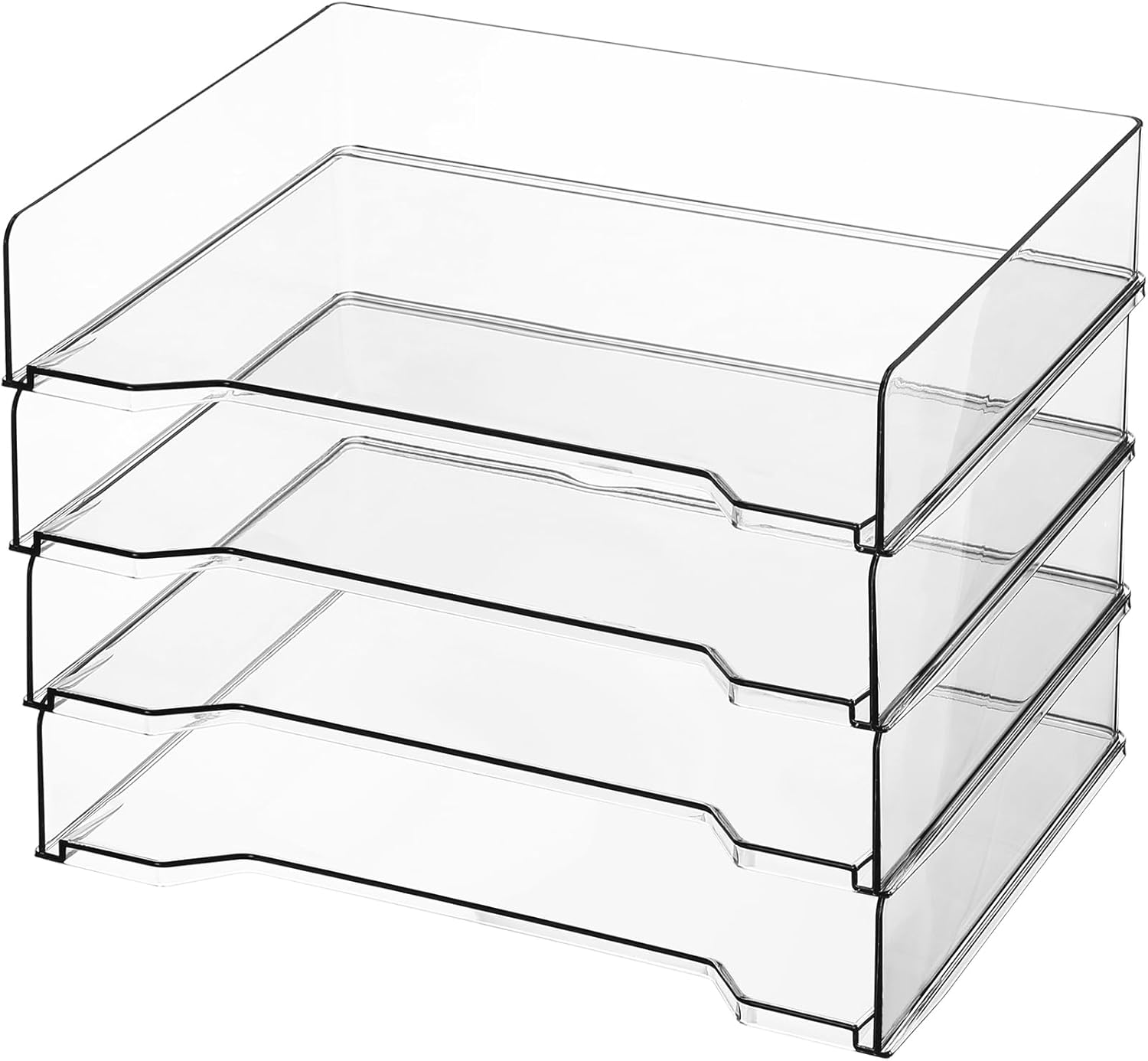 4 Pcs Stackable Letter Tray Rectangular Plastic Desk Organizer 13 x 9.5 x 2.6 in Paper Holder File Tray Accessories Rack for Desktop Office Desk Drawers (Clear)