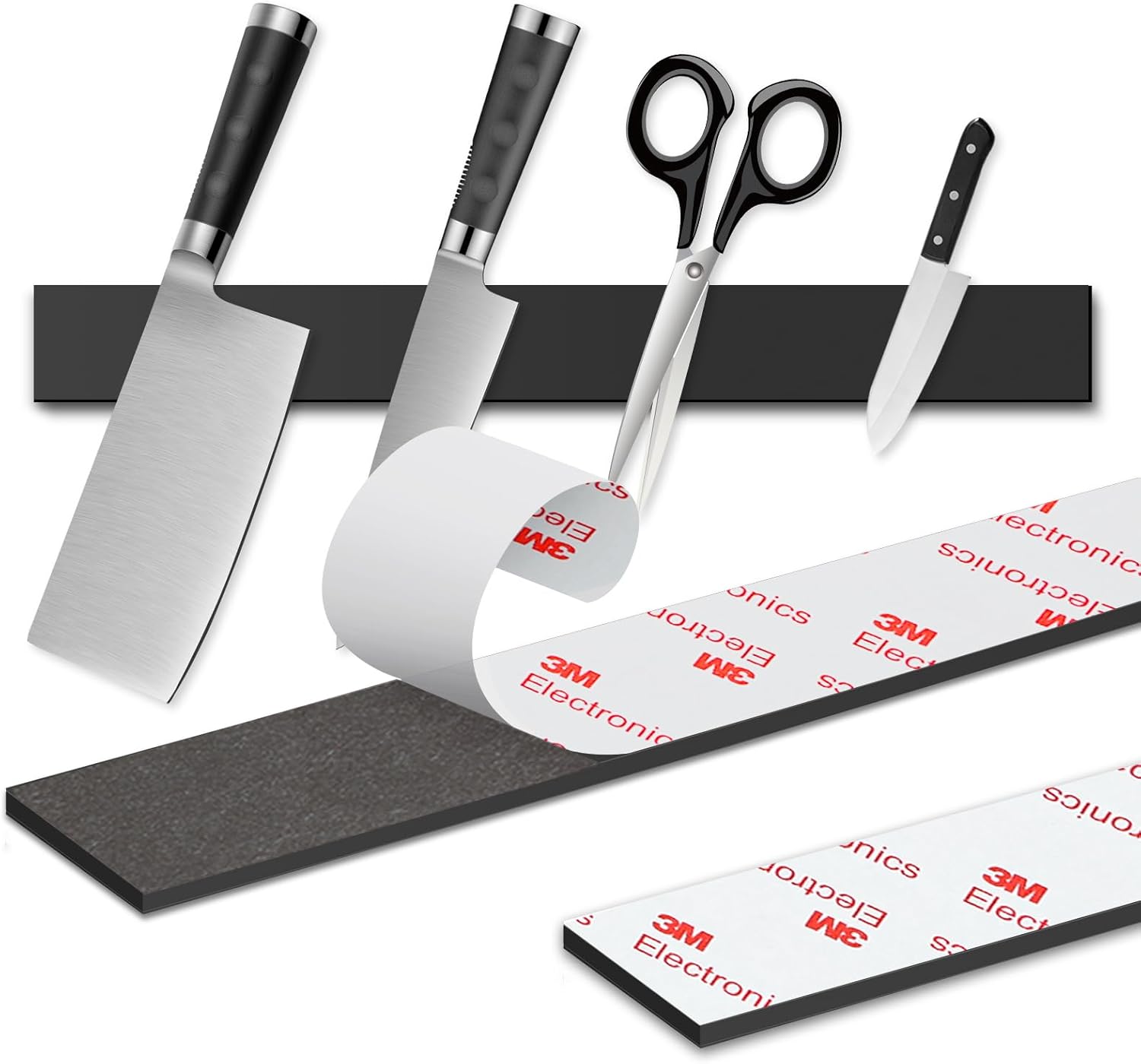 - 🧲【Wide Application】: The strong adhesive magnet strips heavy duty connects the objects easily with magnetic boards (e.g. whiteboards, blackboards ) and fridges, can be used as magnetic tool holder strip for wall, flexible knife magnetic strip, 3m magnetic key holder, magnetic garage tool, magnetic screw holder and tool stand for garage storage and kitchen magnetic fridge organizer.