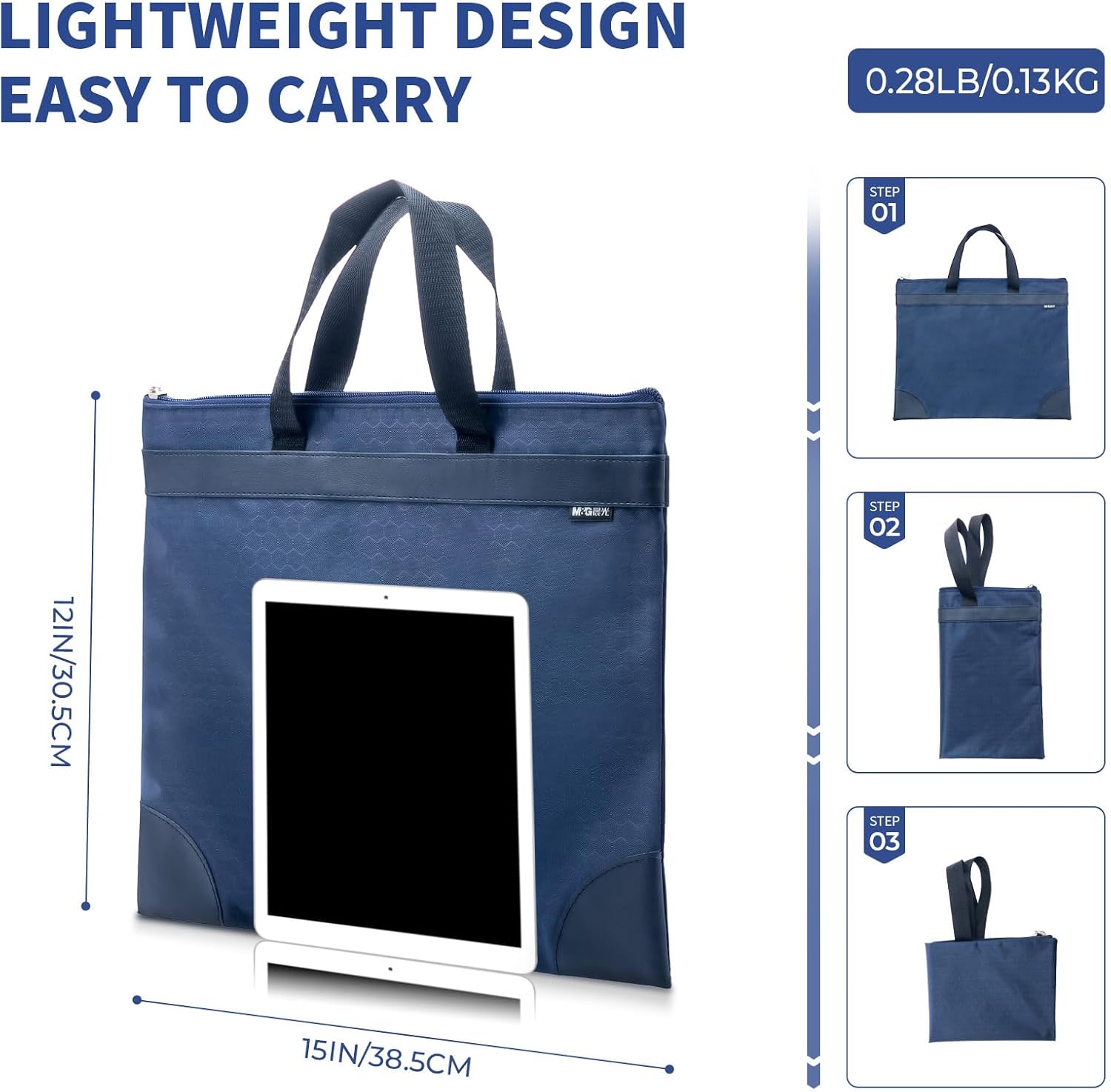 M&G 12x15 in Large Zipper Pouch with Handle, A4 Foldable Lightweight Pocket Waterproof Oxford Document Storage Bag, File Organizer for Office Travel Books Papers Filing Folder – 1 Pack (Blue)