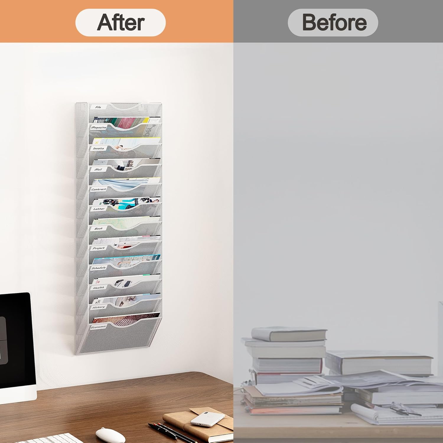 - Increased Storage Space: Measuring 12.8 x 3.98 x 37.8 inch, the wall file organizer's tall and narrow design maximizes vertical space, making it ideal for small spaces