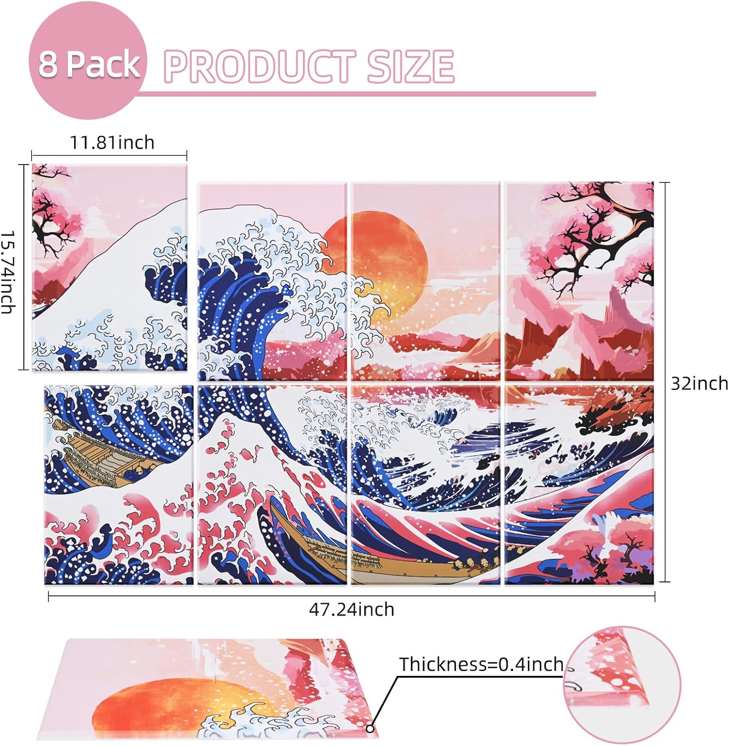 Art Acoustic Panels, 48"X32" Soundproof Wall Panels 8 Pack Self-adhesive Sound Absorbing Panels Decorative Acoustical Wall Padding for Recording Studio (Sea Wave)
