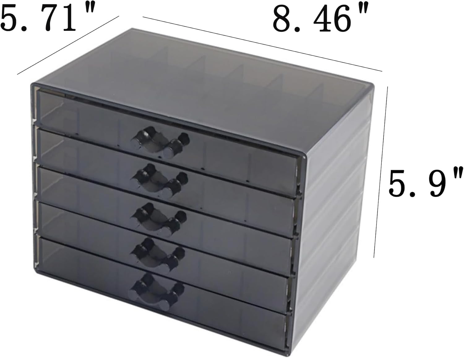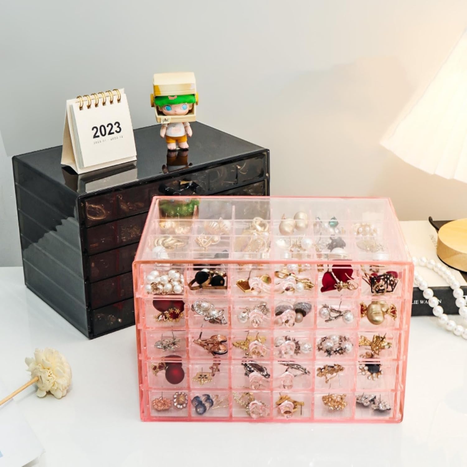 Feadily Acrylic Jewelry Organizer Box, Jewelry Drawer Organizer With 5 Drawers 120 Grids, Black