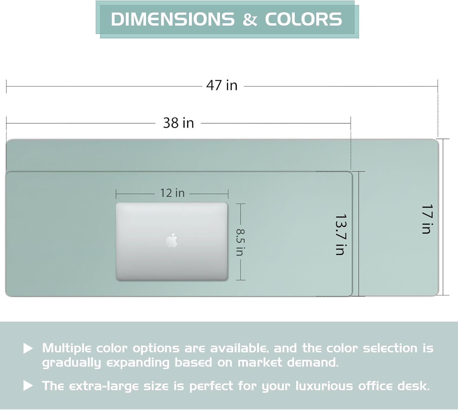- Multifunctional Desk Mat๏ผDiscover the versatility of our Multifunctional Desk Pad! Measuring 38" x 13.8" / 47" x 17", it provides ample space for your laptop, mouse, and keyboard. Enjoy its comfortable and smooth surface, perfect for both mouse and writing activities. The non-slip material ensures stability during everyday use, enhancing your overall work experience.