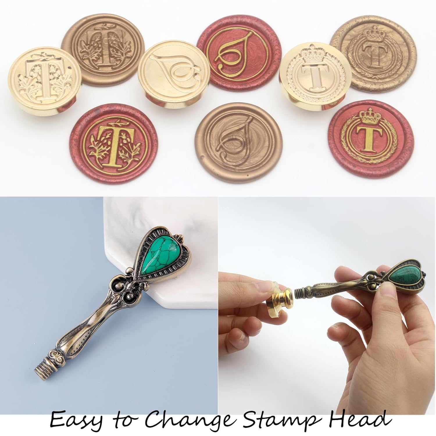- 3 in 1 Wax Stamp Seal Kit: With 3 different pattern styles (simple, vintage and elegant) of the same letter brass heads to choose from, you can easily create personalized seals that make a statement for different occasions. It is also the pefect family name initials wax seal stamp set shared by your families