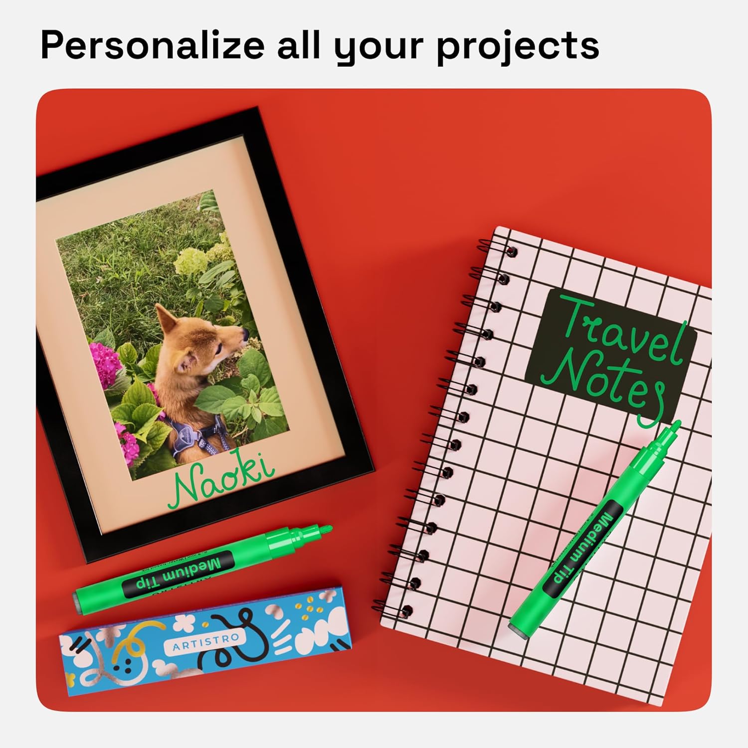 ARTISTRO 2 Green Acrylic Paint Markers - 3mm Medium-Tip Paint Pens - Perfect for Crafting, Art Projects, & More