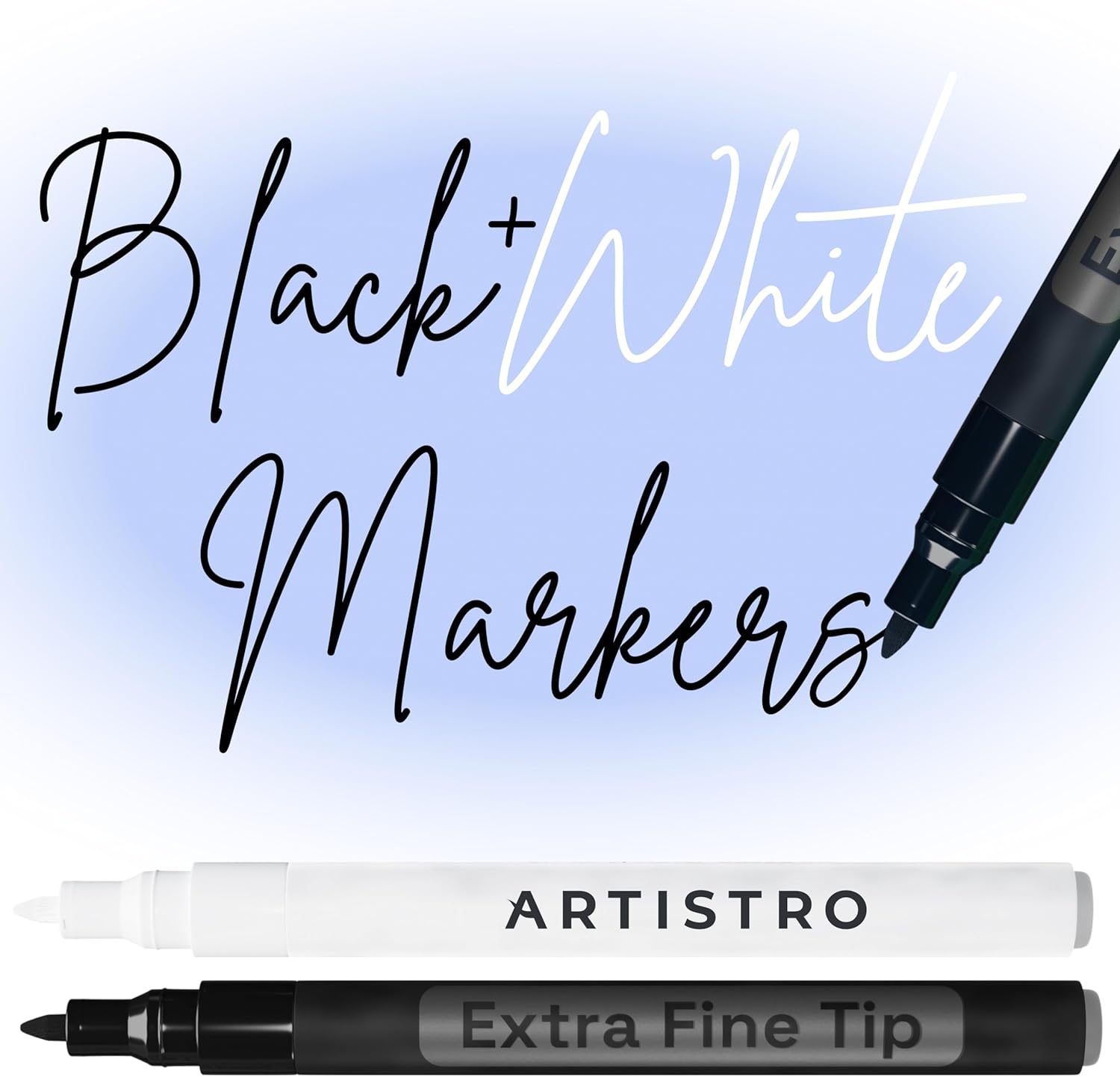 ARTISTRO 2 Black & White Acrylic Paint Markers - 0.7mm Extra Fine-Tip Paint Pens - Perfect for Crafting, Art Projects, & More