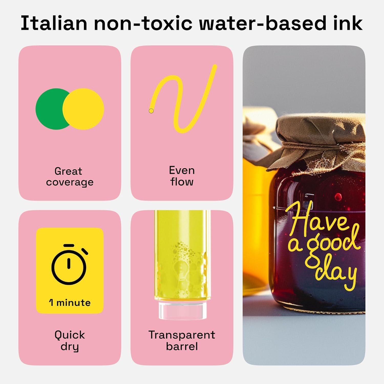 - PREMIUM QUALITY: This Artistro 2-pack of medium fine yellow acrylic paint pens utilizes vivid, acrylic ink that dries quickly to produce a durable opaque and glossy finish on any surface. Each acrylic paint pen is equipped with Italian ink and a durable Japanese nib.