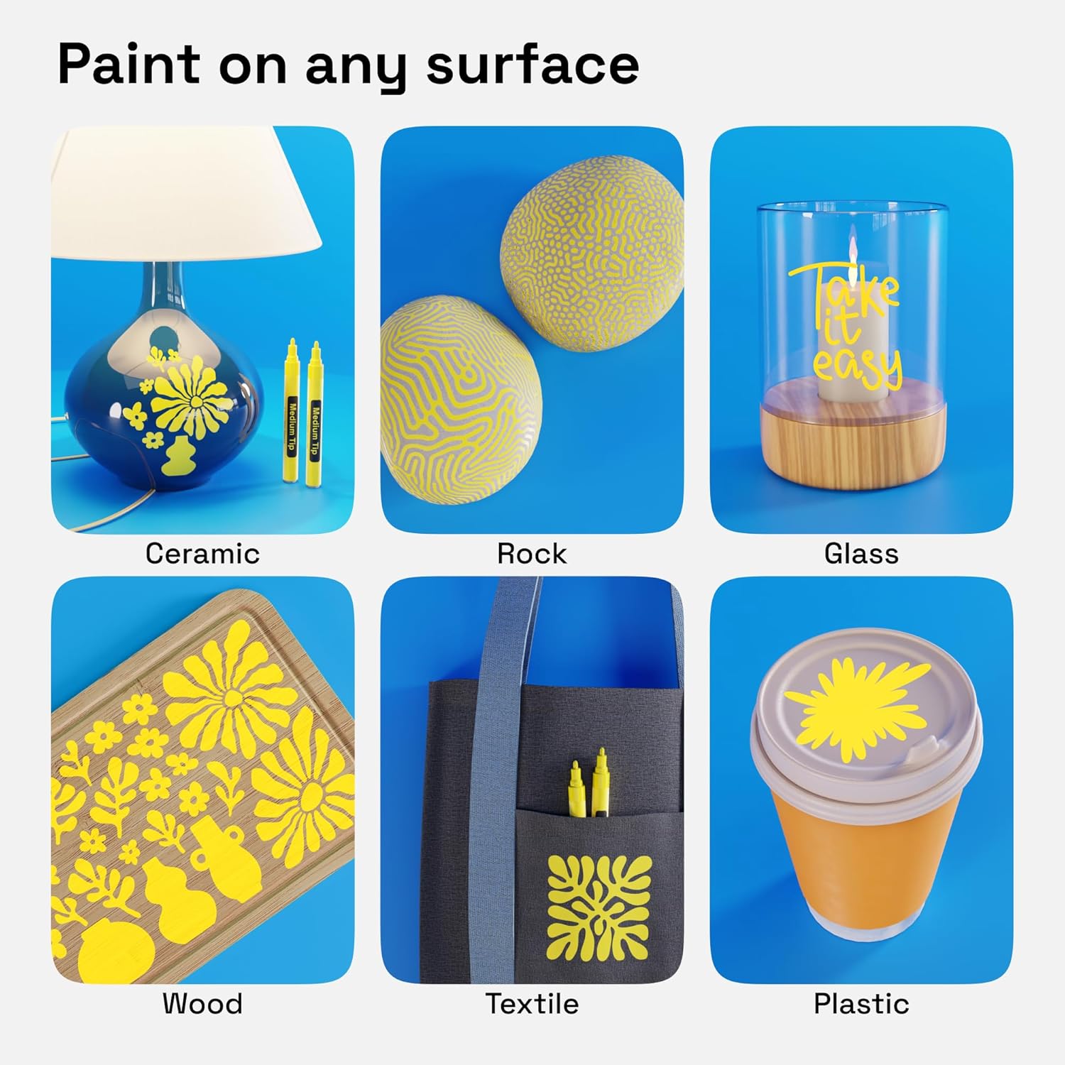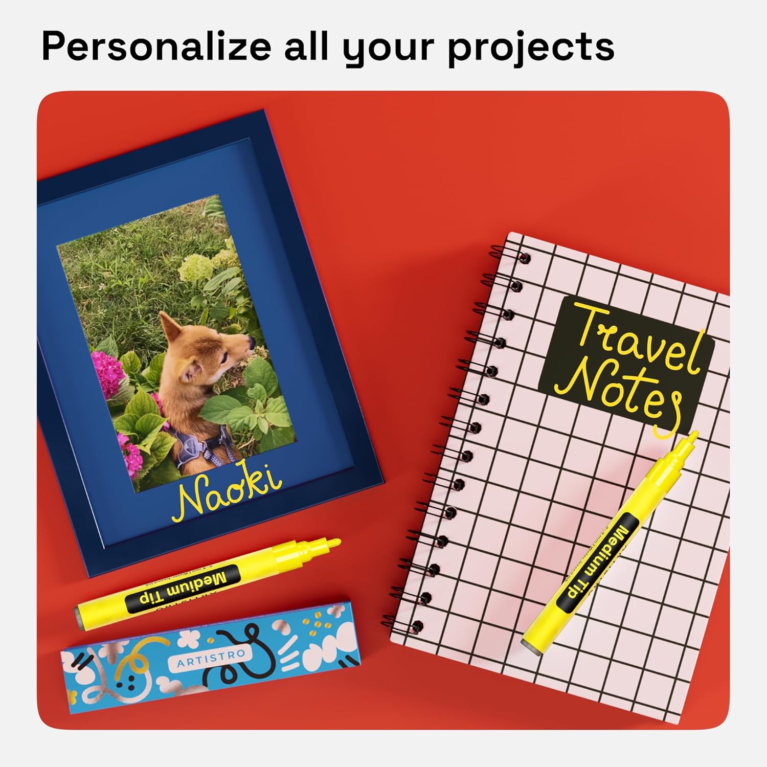 ARTISTRO 2 Yellow Acrylic Paint Markers - 3mm Medium-Tip Paint Pens - Perfect for Crafting, Art Projects, & More