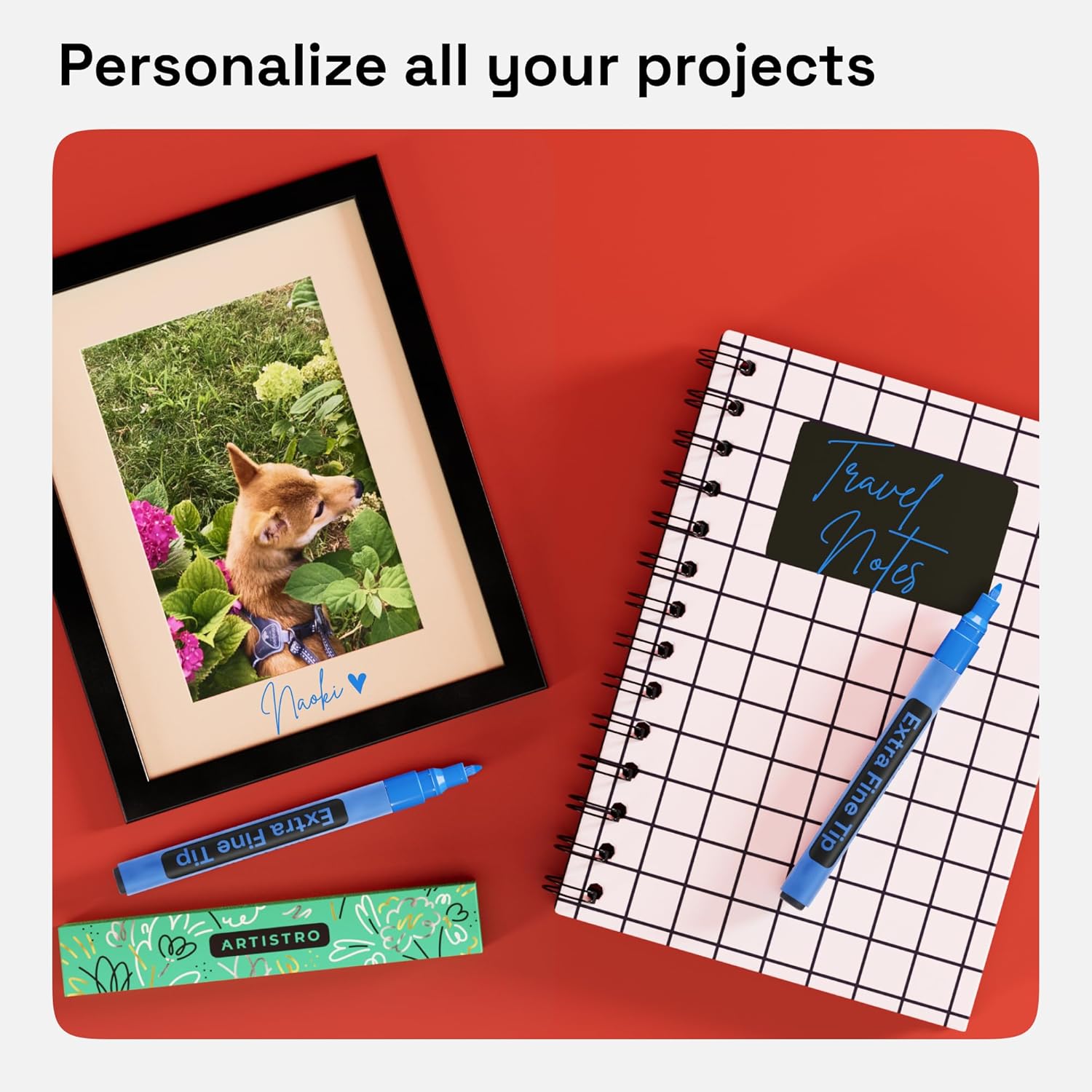 ARTISTRO 2 Blue Acrylic Paint Markers - 0.7mm Extra Fine-Tip Paint Pens - Perfect for Crafting, Art Projects, & More