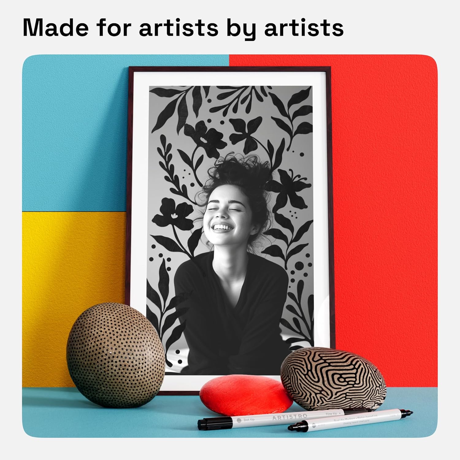 ARTISTRO 2 Black Dual-Tip Acrylic Paint Pens - Multisurface Markers for Fabric, Plastic, & More, 5mm Dot + 1mm Fine Tips