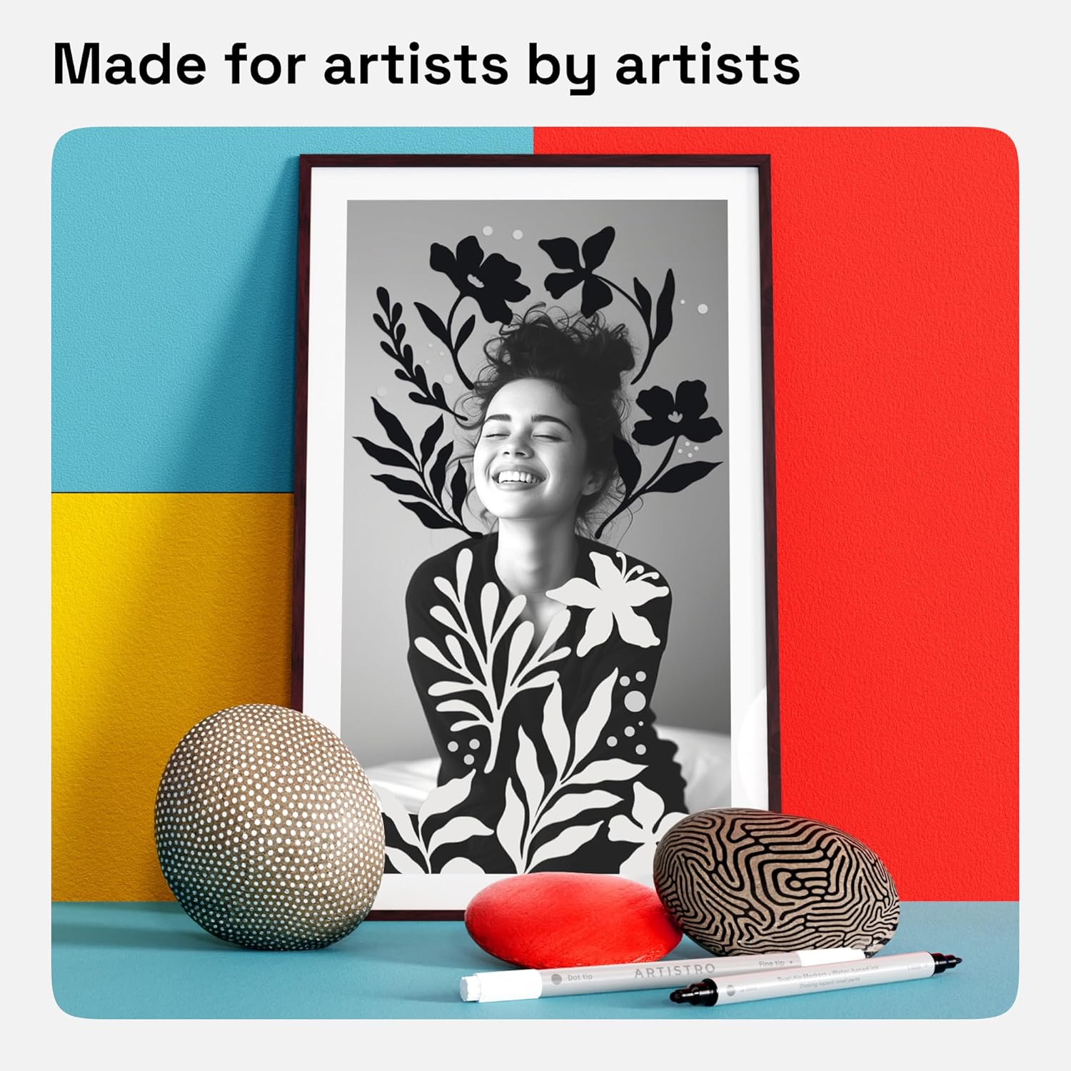 ARTISTRO 2 Black&White Dual-Tip Acrylic Paint Pens - Multisurface Markers for Fabric, Plastic, & More, 5mm Dot + 1mm Fine Tips