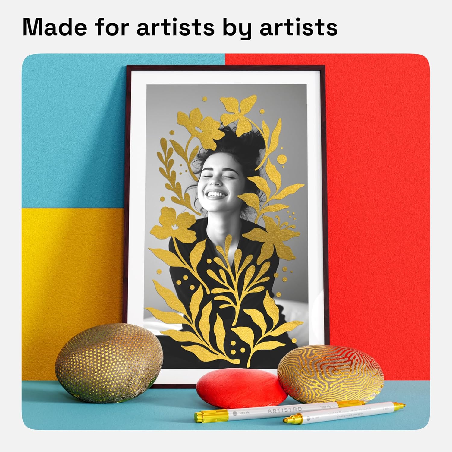 ARTISTRO 2 Gold Dual-Tip Acrylic Paint Pens - Multisurface Markers for Fabric, Plastic, & More, 5mm Dot + 1mm Fine Tips