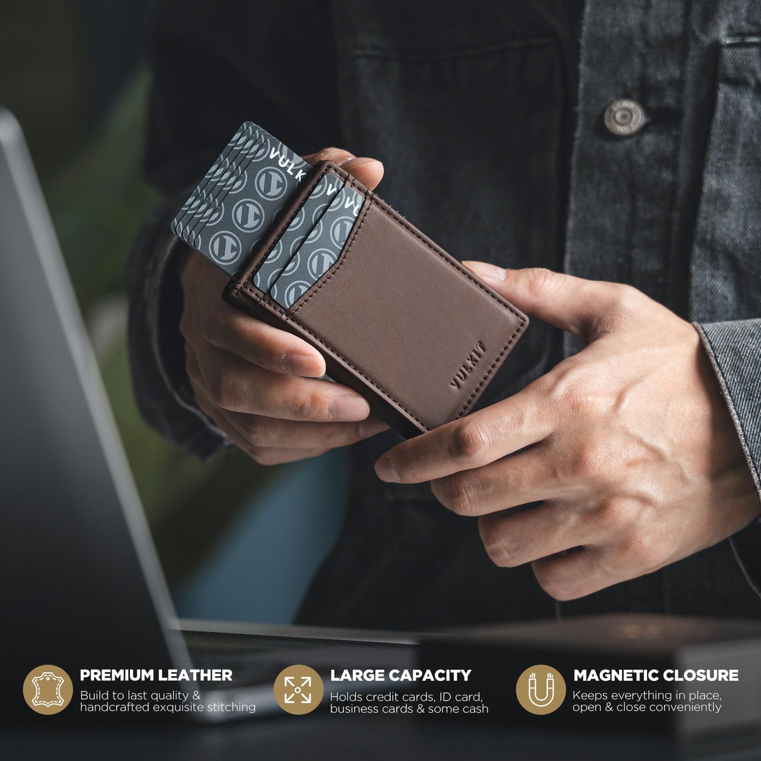 - Large Capacity, Minimalist Design: Design to fit your everyday essentials. It fits easily into your jeans pocket or a lightweight backpack. You can insert 8 to 10 cards (including one visible ID slot) and a small amount of bills as needed.