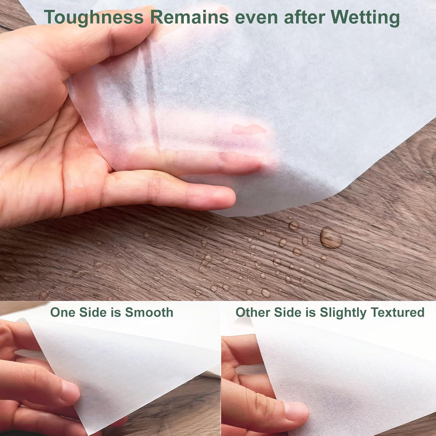 - Lightweight and Acid-free: Featuring the wood pulp and vegetable fiber pulp,the teabag tissue paper is super thin and light with moderate water absorption.Suitable for painting with watercolor,acrylic,and other pigments.With its toughness characteristic,it can resist wet processing in various media even after being wet.