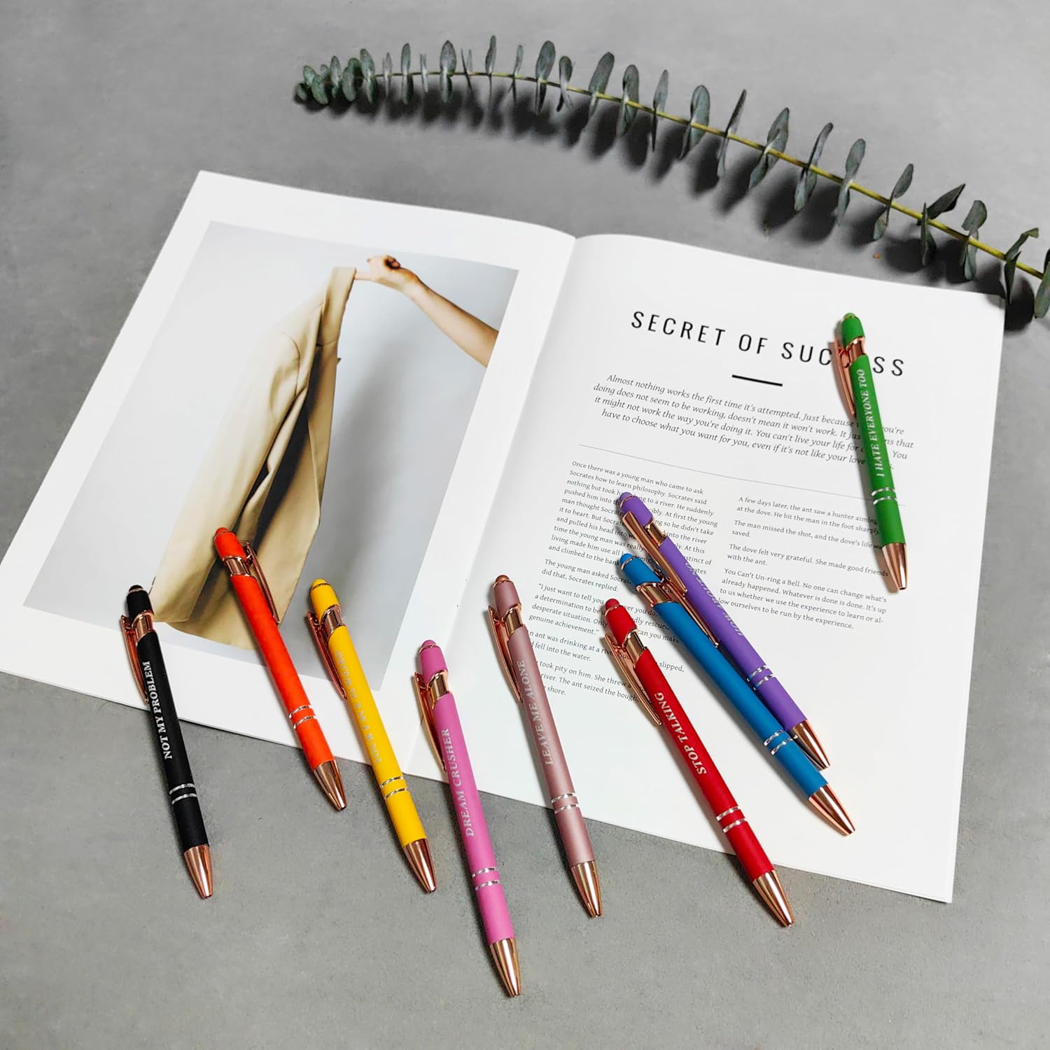 Aozora 9 Pack Ballpoint Pens Smooth Writing 2-in-1 Stylus Retractable Ballpoint Pen with Stylus tip, Office Decor Metal Stylus Pen for Touch Screens, 1.0 mm Black Ink (Funny)
