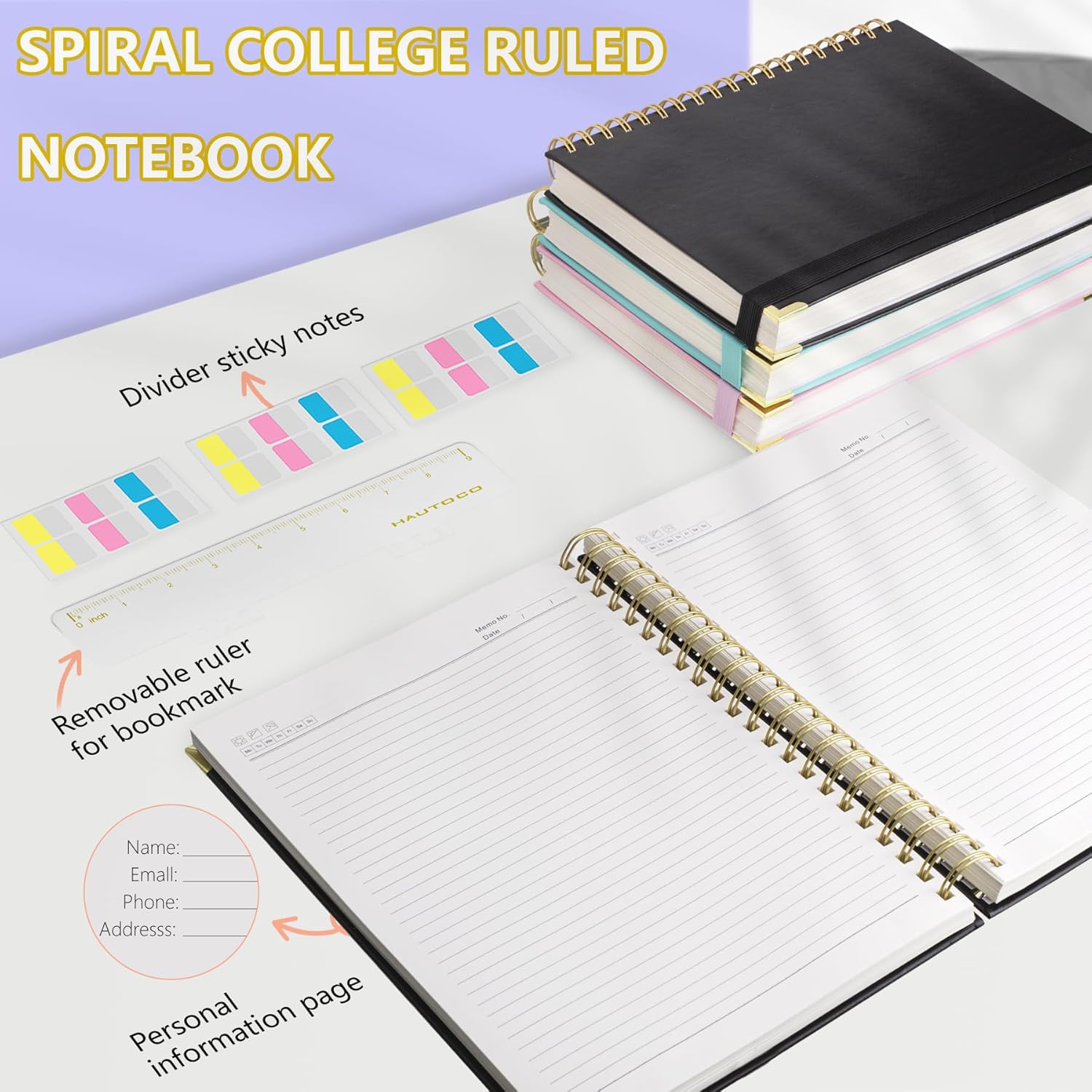 HAUTOCO Spiral Notebook College Ruled B5 Leather Bound Journal, 320 Pages, Hardcover Notebooks with tabs, 100 GSM Paper, 7"x 9.7" Lined Journaling Notebooks for Work Office School Business, Black