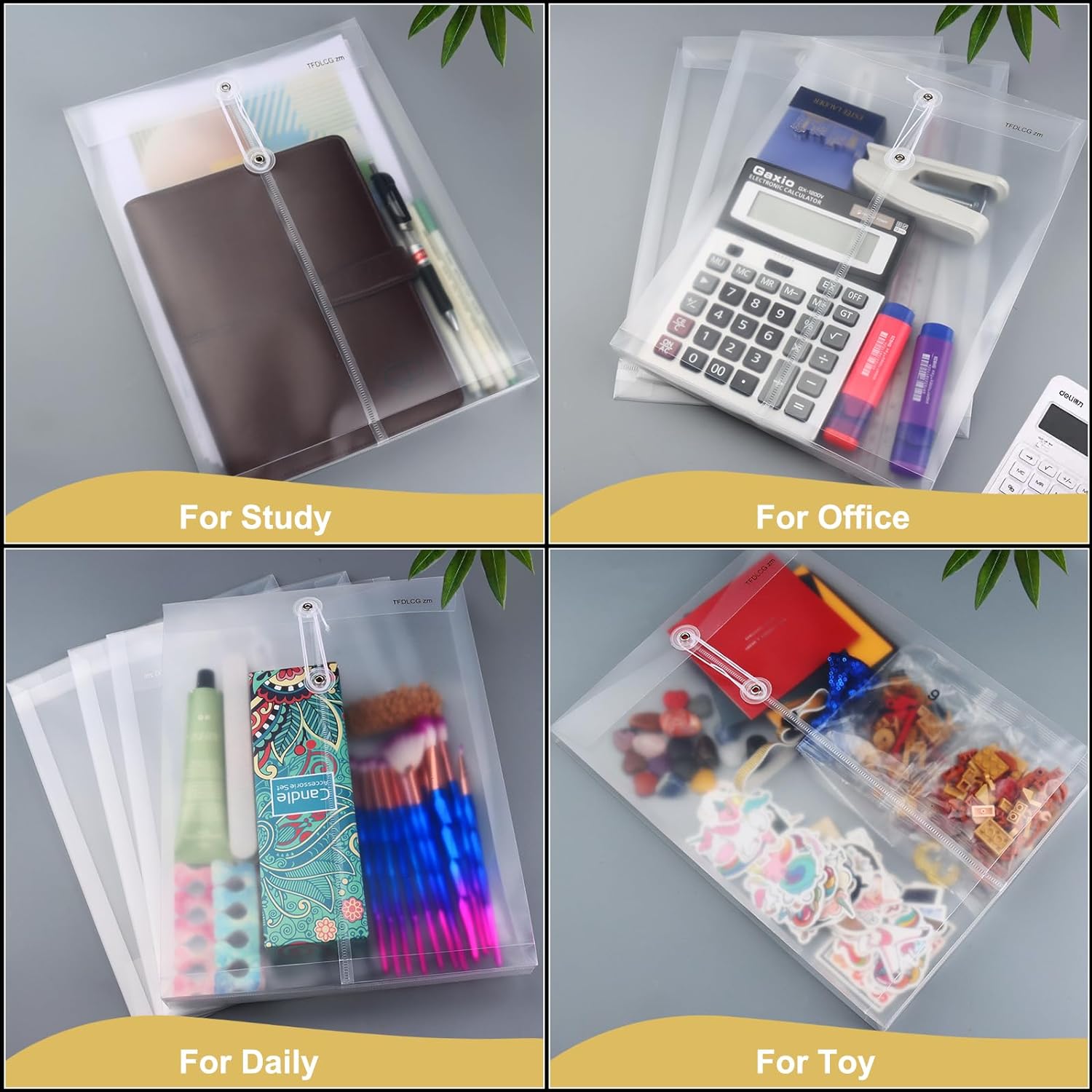 12 Pack Clear Plastic Envelopes with String Tie Closure,A4 Letter Size,TFDLCG zm Poly Reusable File Folders Project with1-1/4 Expansion,Paper Documents Organizer for Home, Office and Classroom