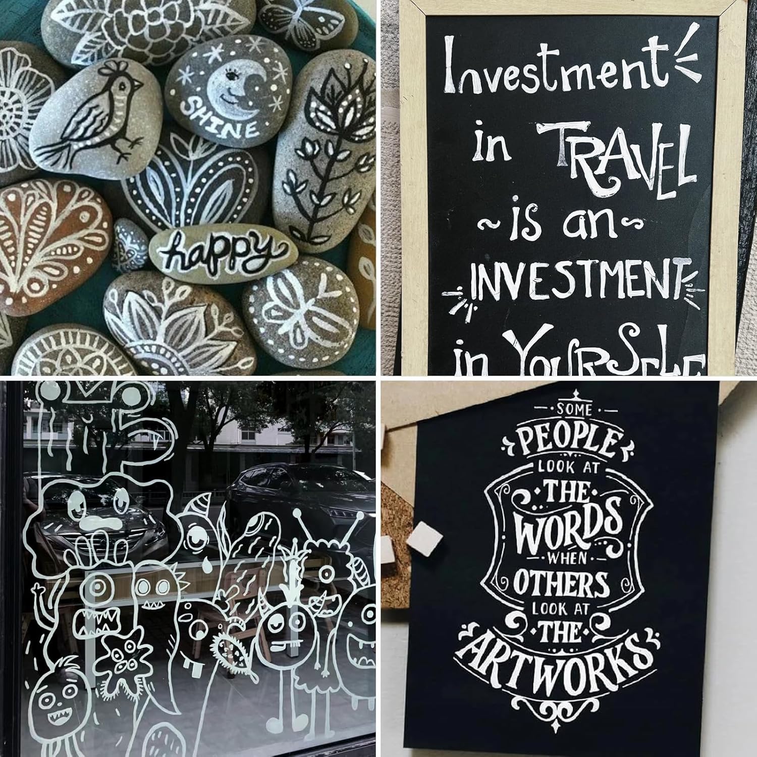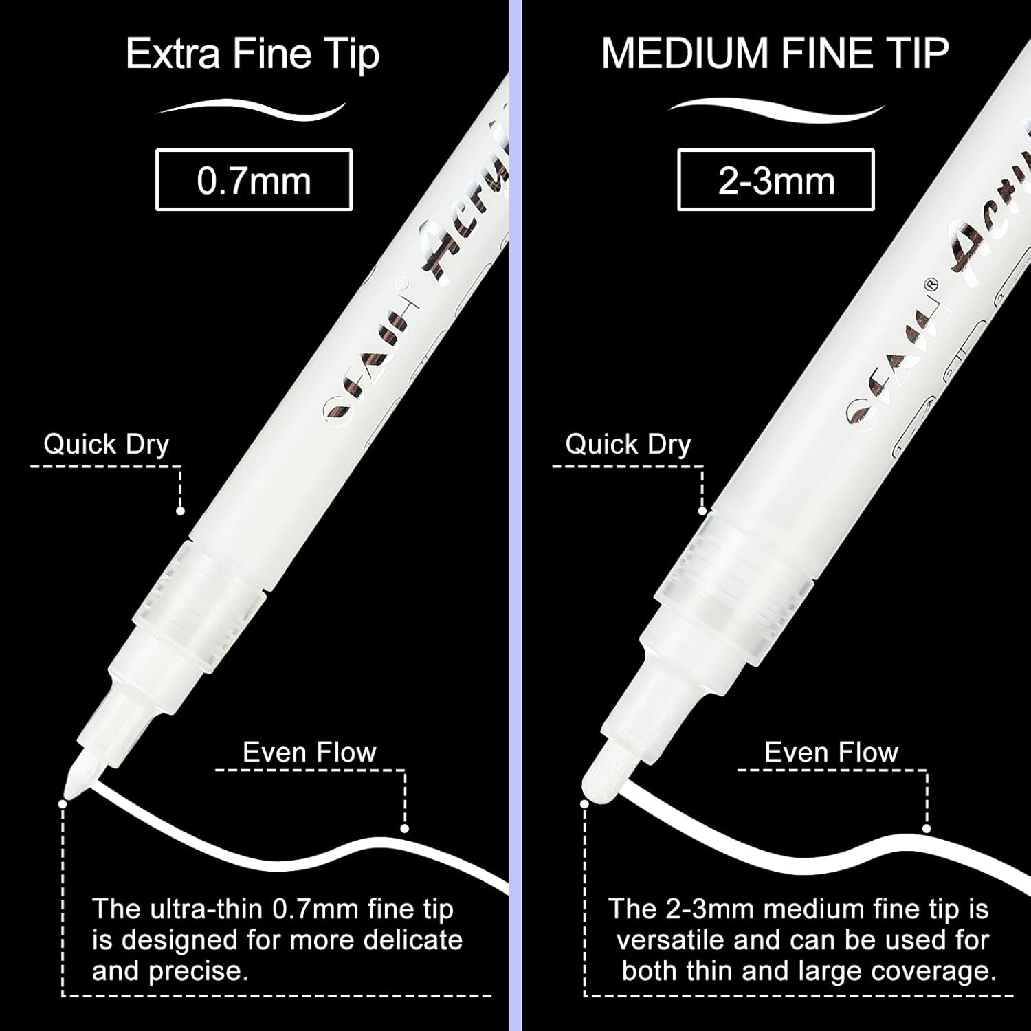 SFAIH White Paint Markers Paint Pens - 8 Pack Acrylic Permanent Marker for Rock Painting, Wood, Metal, Fabric, Plastic, Canvas, Glass, Ceramic, Art Projects, 2-3MM Medium Tip & 0.7mm Extra Fine Tip