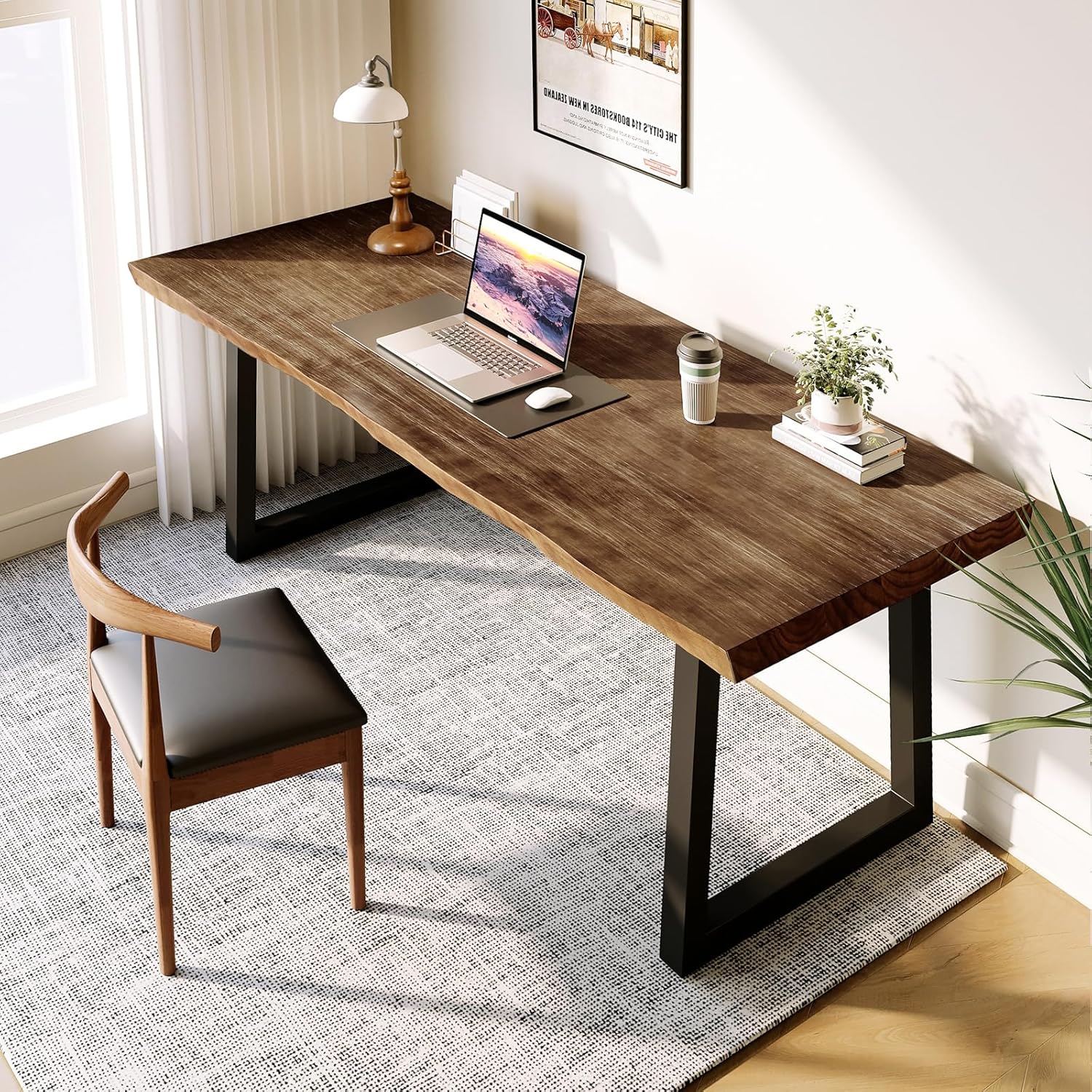 - ćSolid Wood Office DeskćThe dark brown real wood desk seamlessly blends with various interior decor styles.Industrial modern natural look and crafting, plus its exquisite wood grain, all contribute to its personality and the way it enlivens a room and makes an impression.