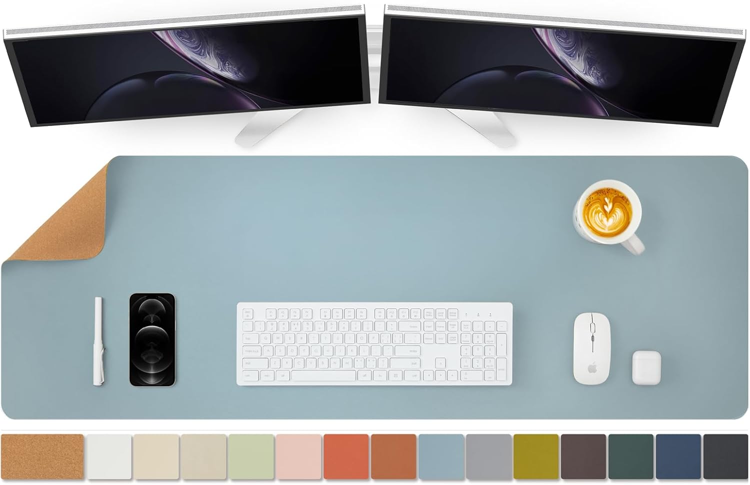 - Eco-friendly dual-sided design with Versatile Surface: Our desk mat combines a sustainable cork side and a premium PU leather side, offering both versatility and eco-conscious style for your workspace. The smooth surface supports seamless mouse operations and effortless writing tasks, promoting desk organization.