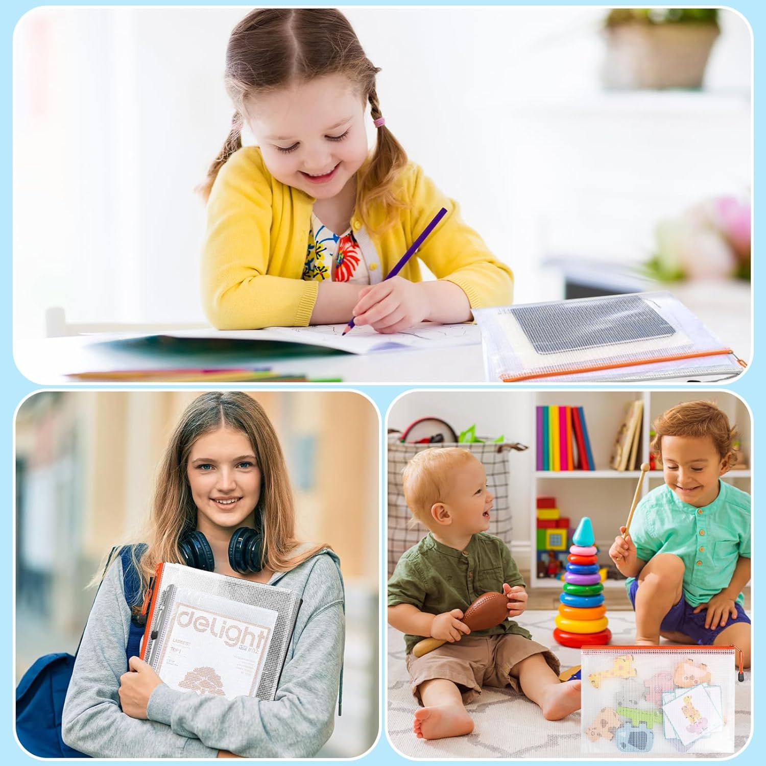 - Package Includes 20 Mesh Zipper Pouches in 5 Different Colors-Black,Grey,Orange,Blue,Pink.You Will Get 2 Sizes Plastic Zipper Bags:10*A3 (13x9 inches),10*A4(16.9x12.4 inches).
