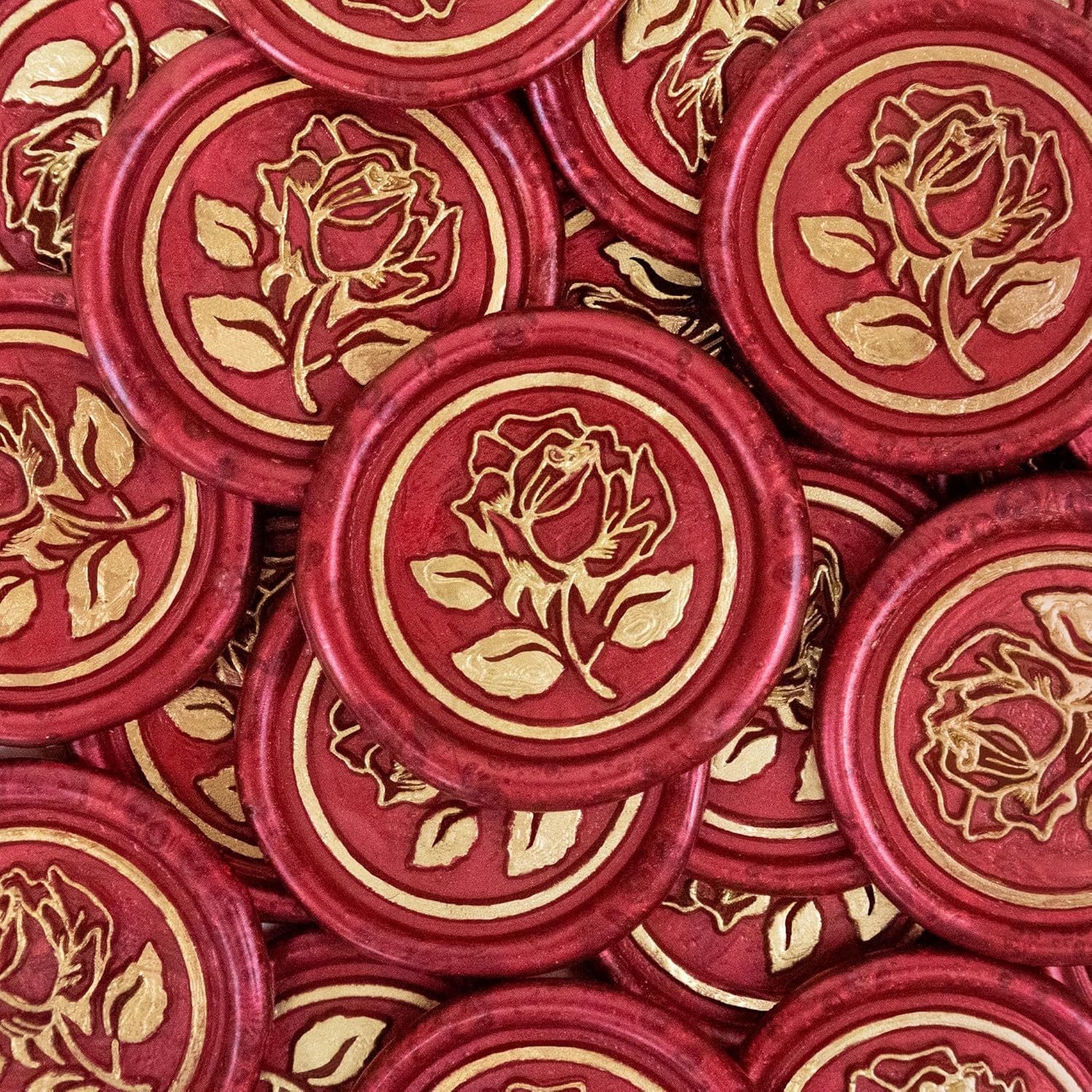 100Pcs Gold & Red Wax Seal Stickers - Handmade Envelope Seals, Self Adhesive Wax Stickers for Wedding Party Invitations, Envelope, Gift Wrap, Christmas (Gold Rose Style, Red)